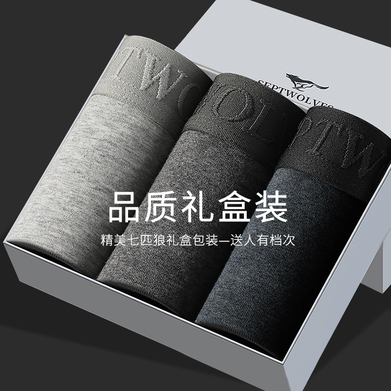 七匹狼纯棉内裤男士三角裤头石墨烯抗菌中腰性感短裤衩宽松加大码