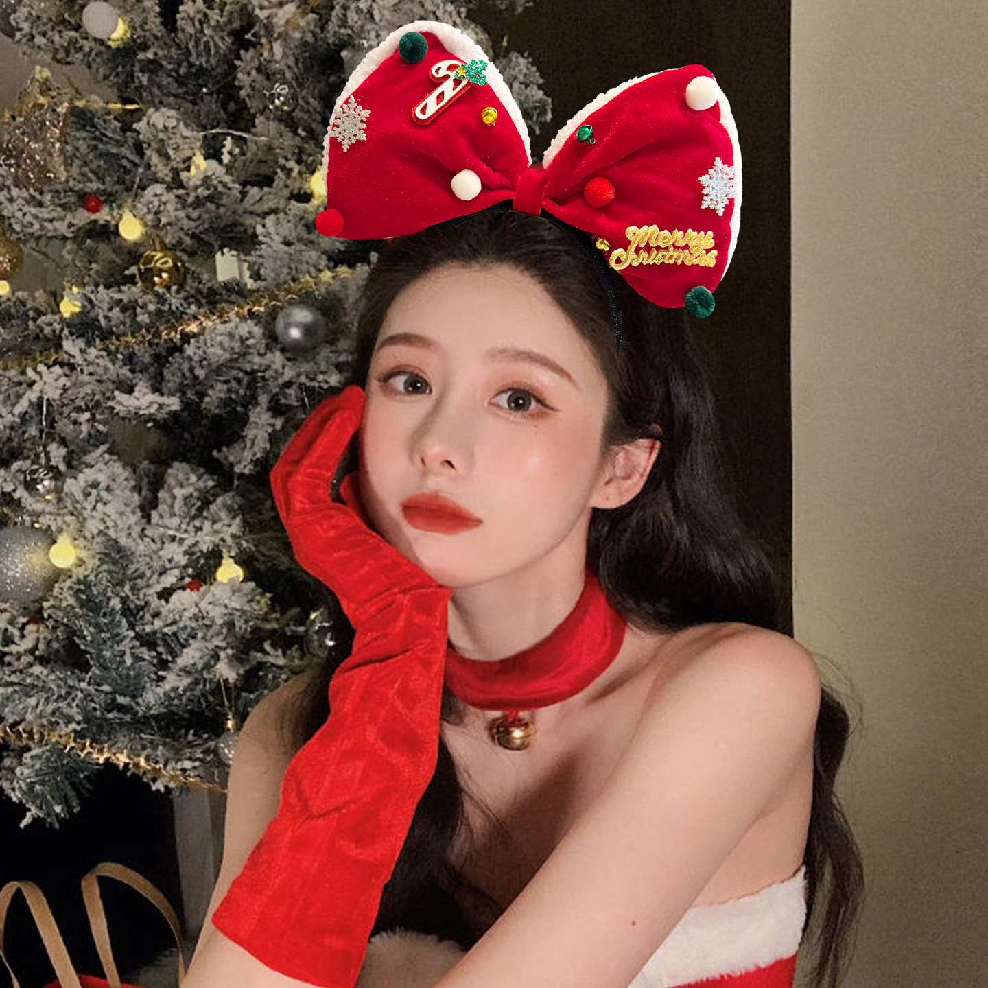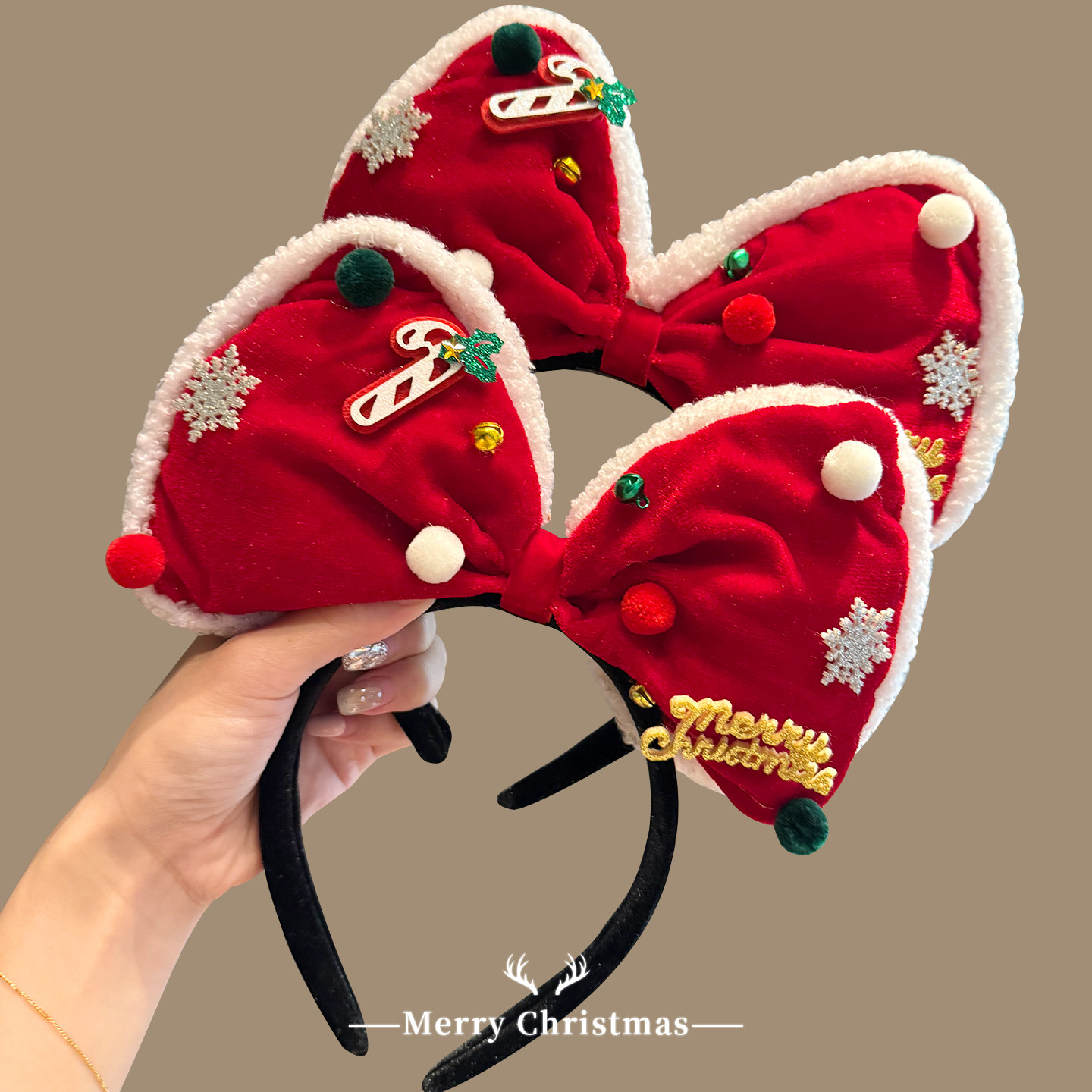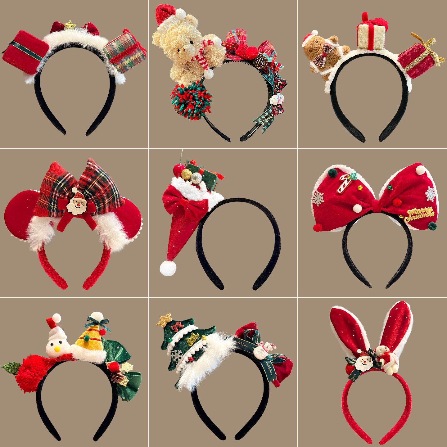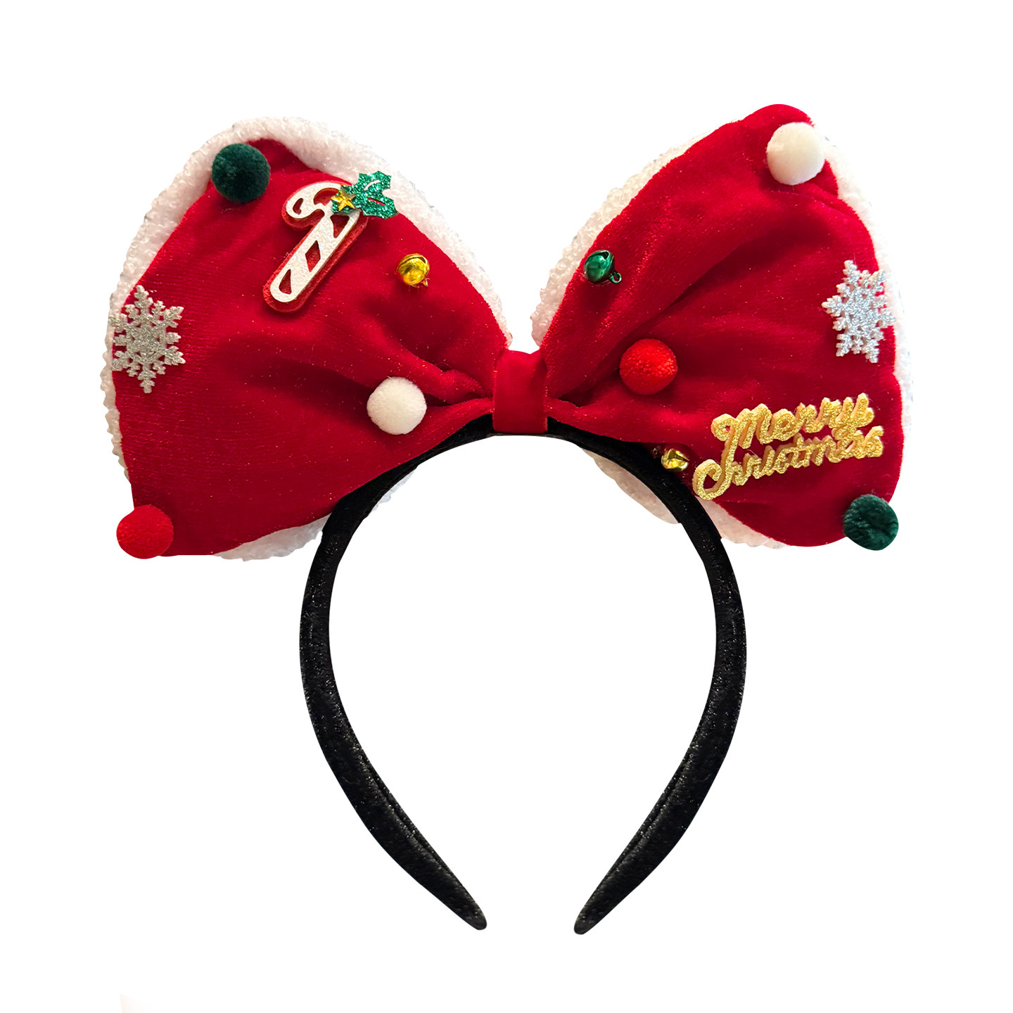 圣诞节迪士尼红色蝴蝶结发箍可爱头饰节日发饰游乐园拍照打卡装饰