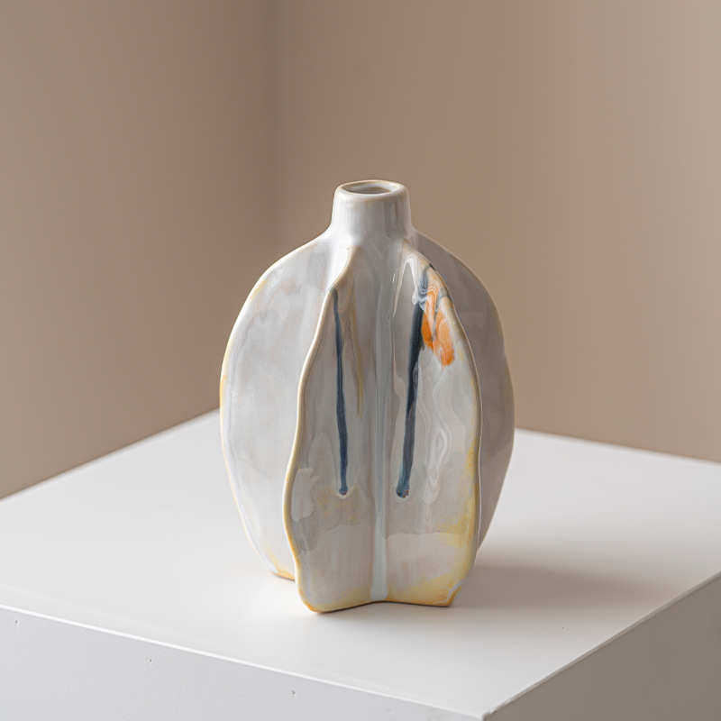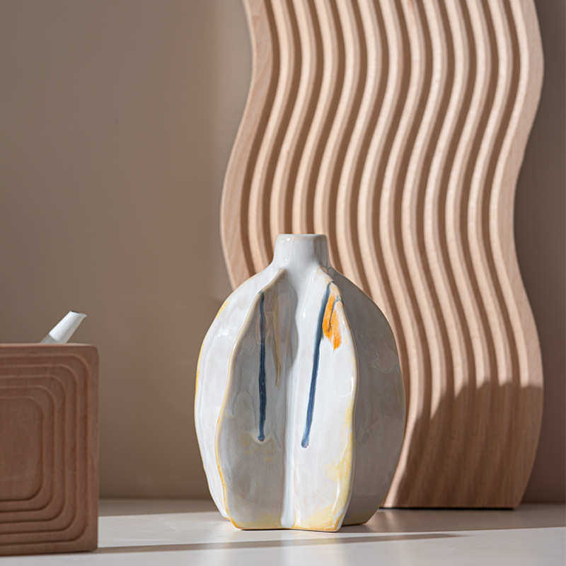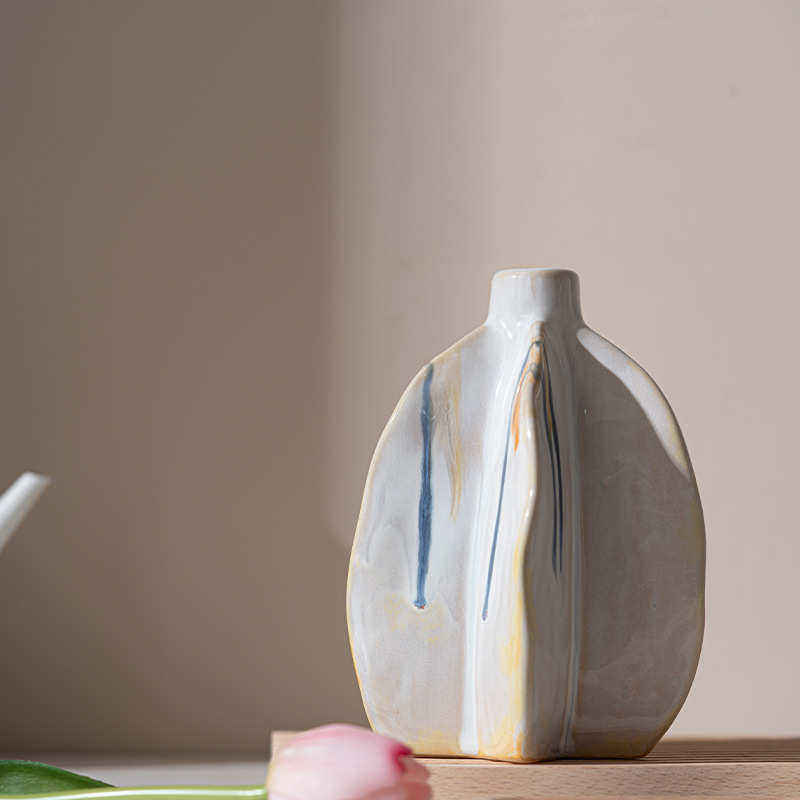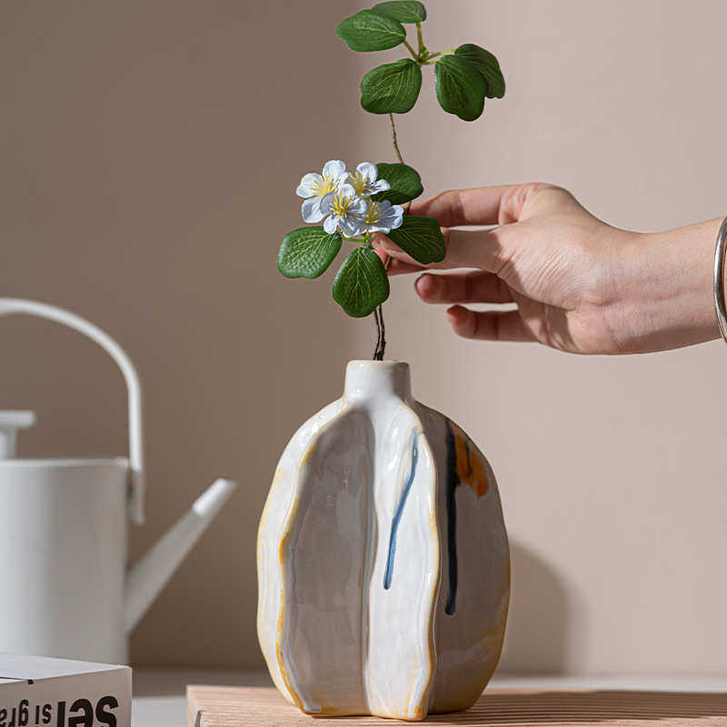 乐梦 白色流釉杨桃花瓶高级感装饰摆件客厅厨房插花家居软装饰品