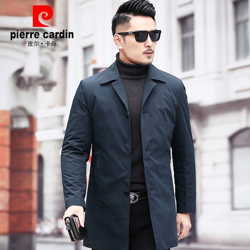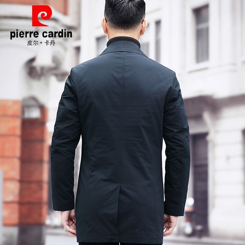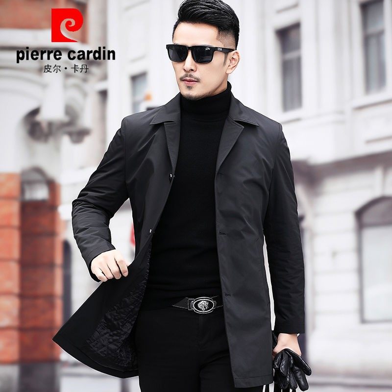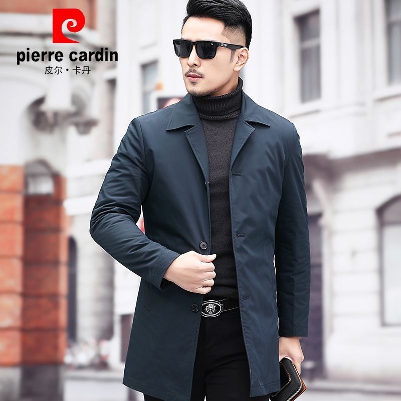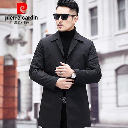 皮尔卡丹男士中长款风衣秋冬季新款高档单排扣商务休闲棉衣外套男