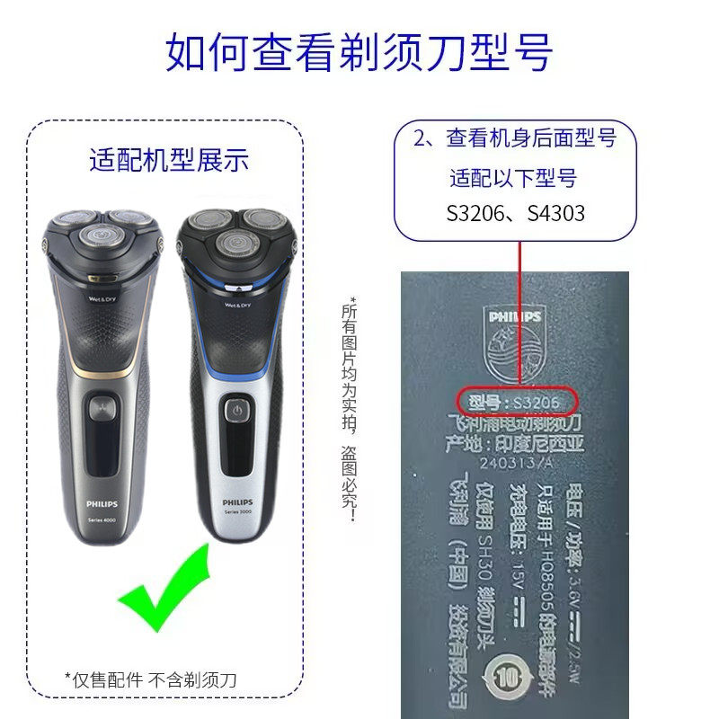 适用飞利浦剃须刀SH30刀头S4303刀片网罩头盖固定刀架充电器S3206