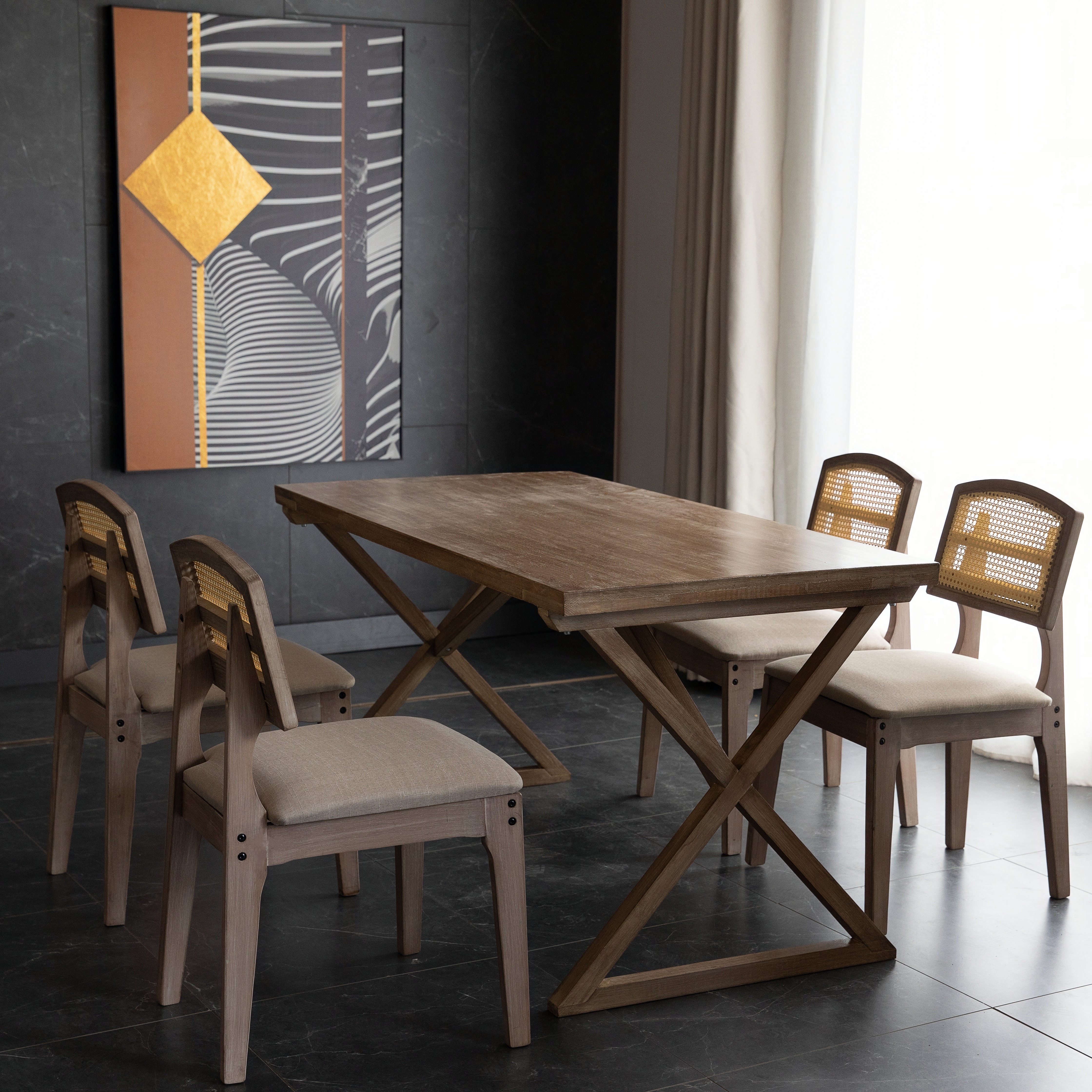 梵辰现代简约实木餐桌椅组合长方形做旧民宿家用饭店餐厅成套桌椅