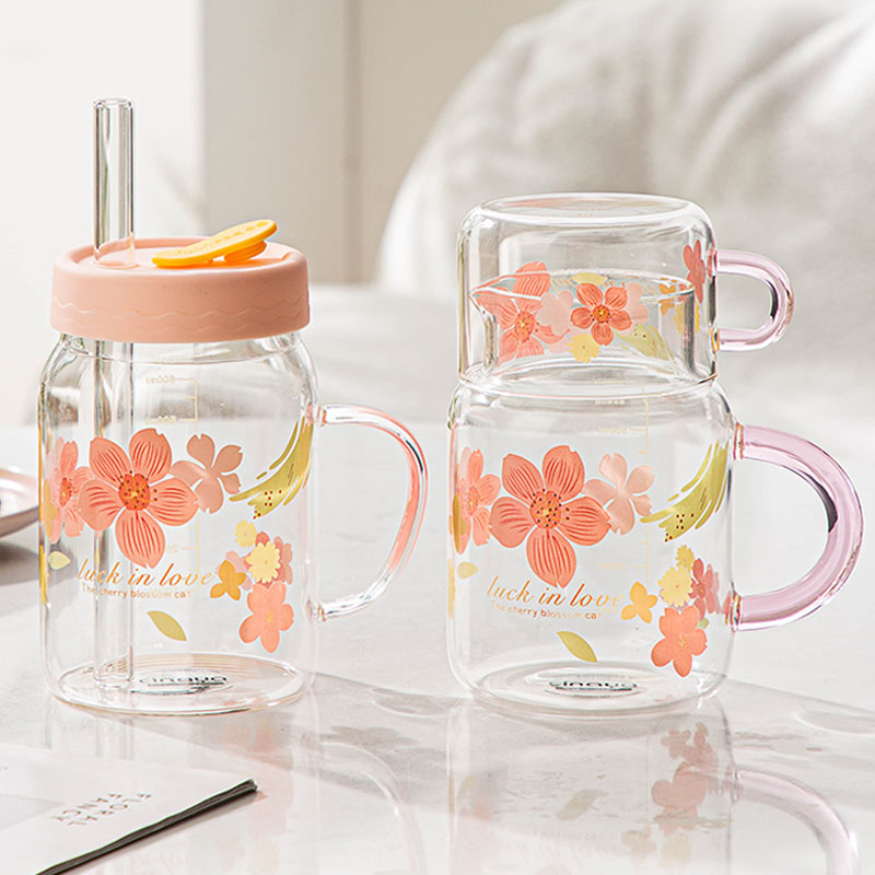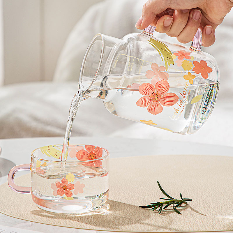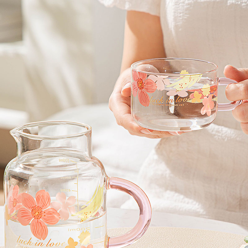 一人饮冷水壶玻璃吸管杯果汁壶高硼硅耐高温凉水杯家用蓄水饮料杯