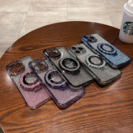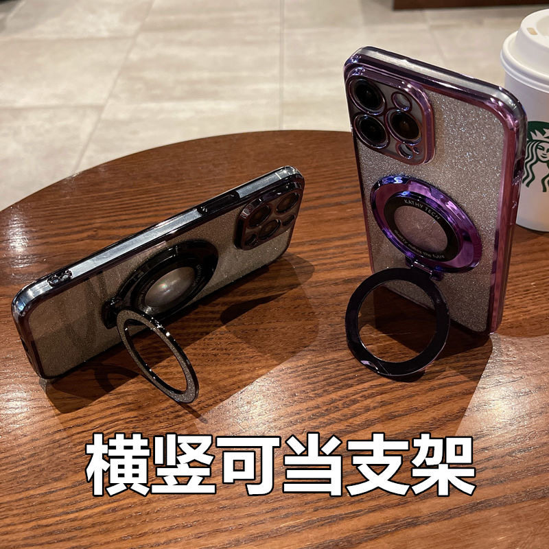 适用华为MATE80 NOVA14 P80 S7PRO畅享60X畅享70PLUS全包精孔防摔ins高级感圆圈支架闪粉电镀软胶手机壳批发