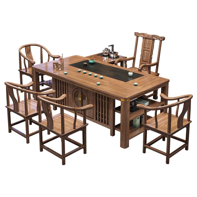 实木茶桌椅组合一桌五椅中式茶台烧水壶一体办公室功夫茶几泡茶桌