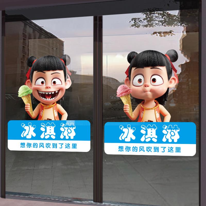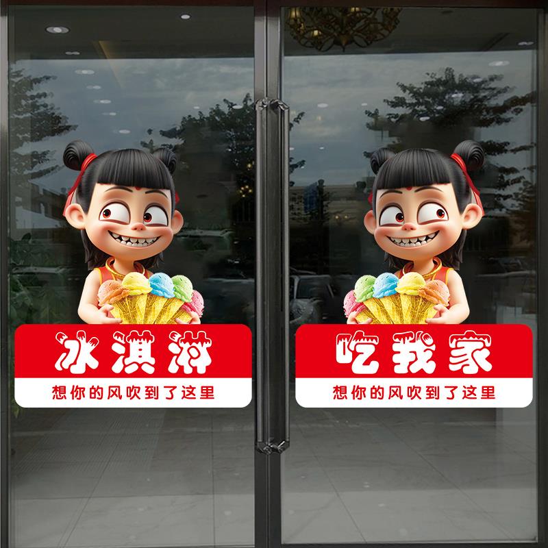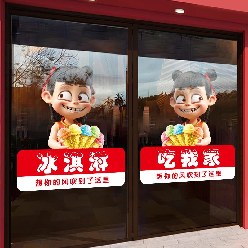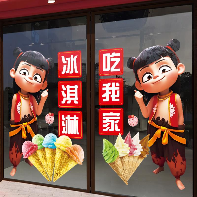 哪吒雪糕冰淇淋贴纸墙贴画冰糕冷饮店铺装饰广告海报玻璃门贴