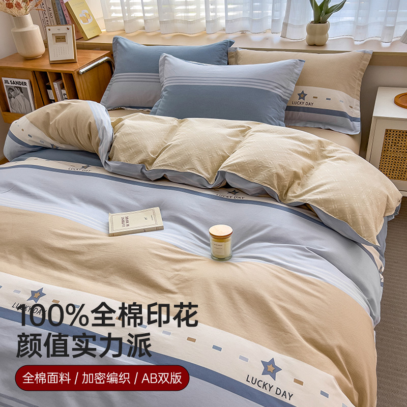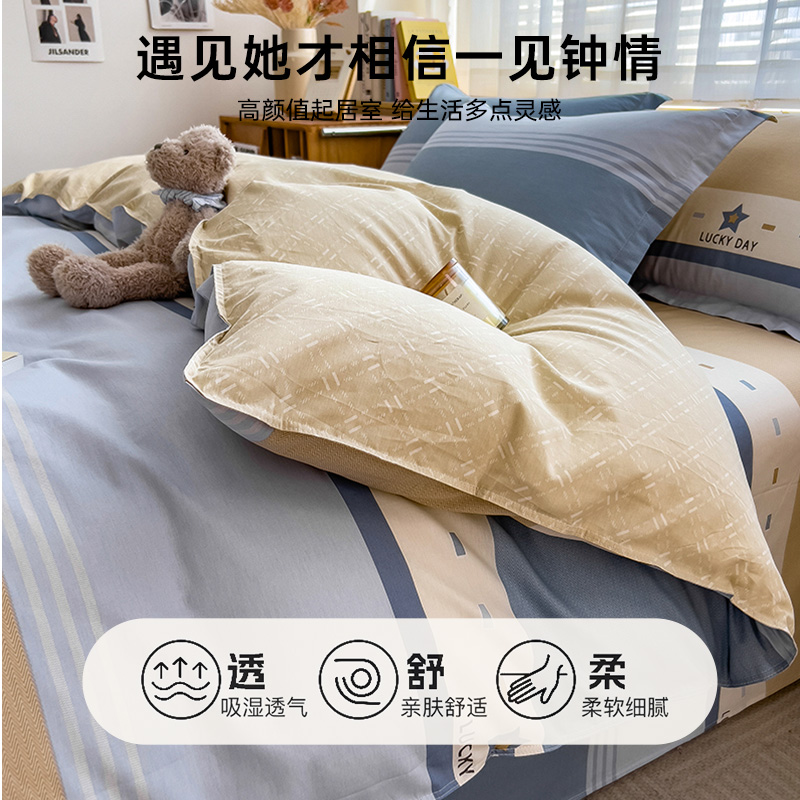 无印良品纯棉床上四件套全棉儿童床品卡通被套宿舍单人三件套床笠