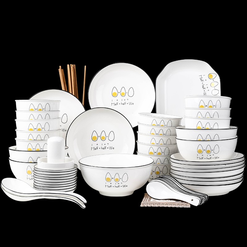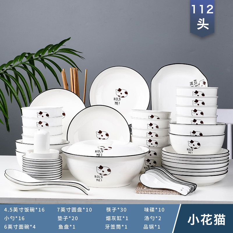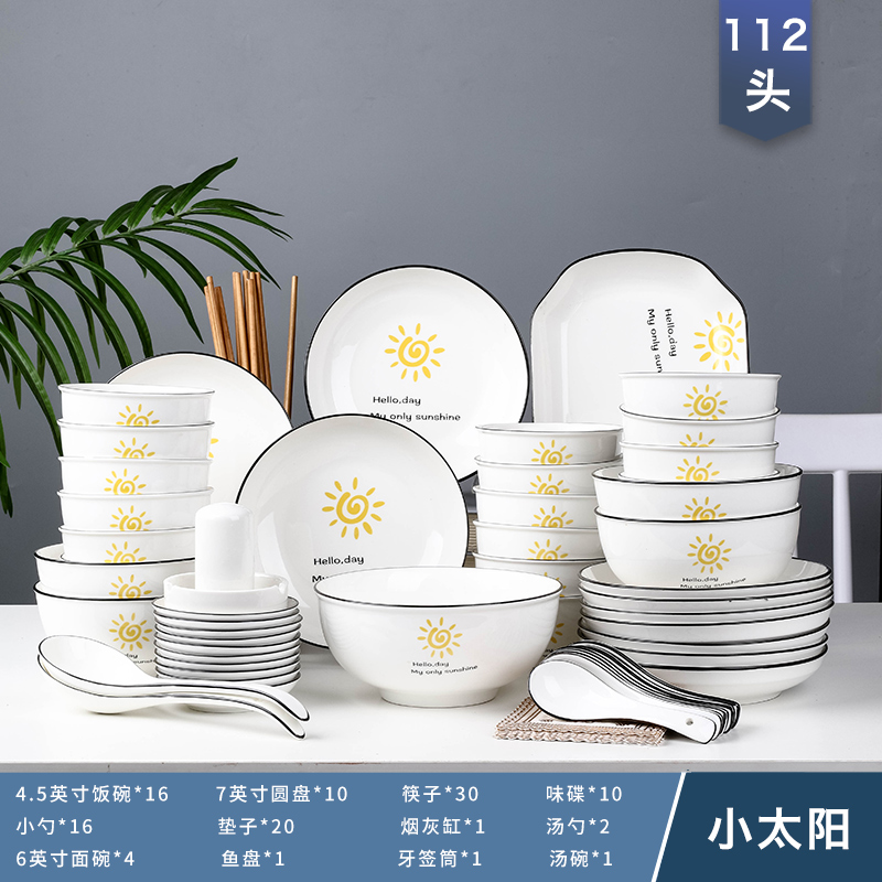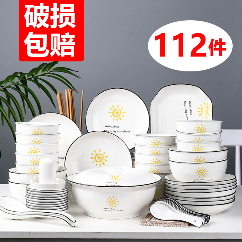 碗碟套装家用112件陶瓷简约个性创意碗筷盘子组合奢华乔迁餐具