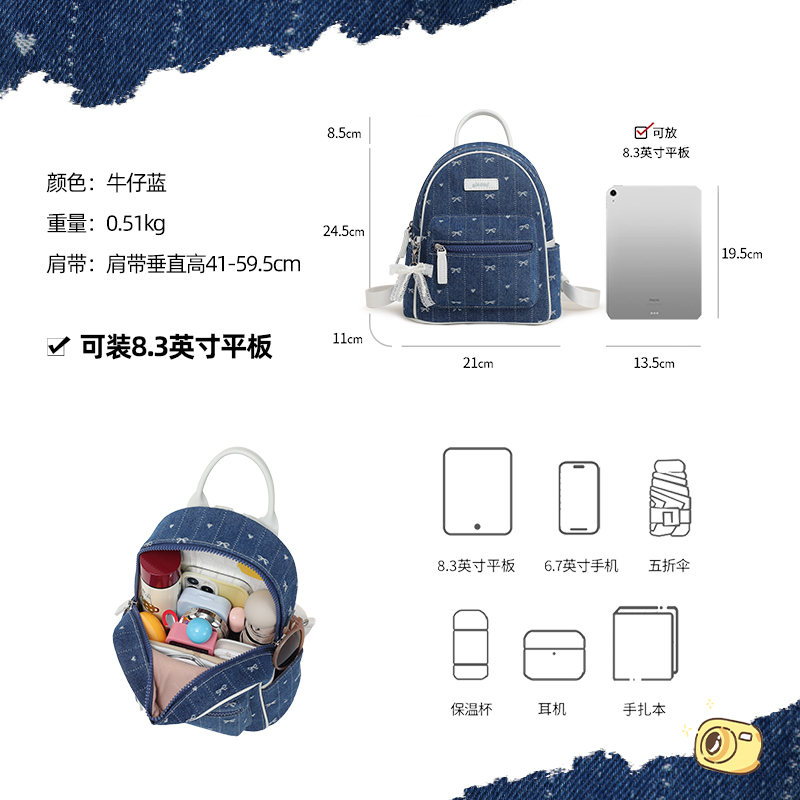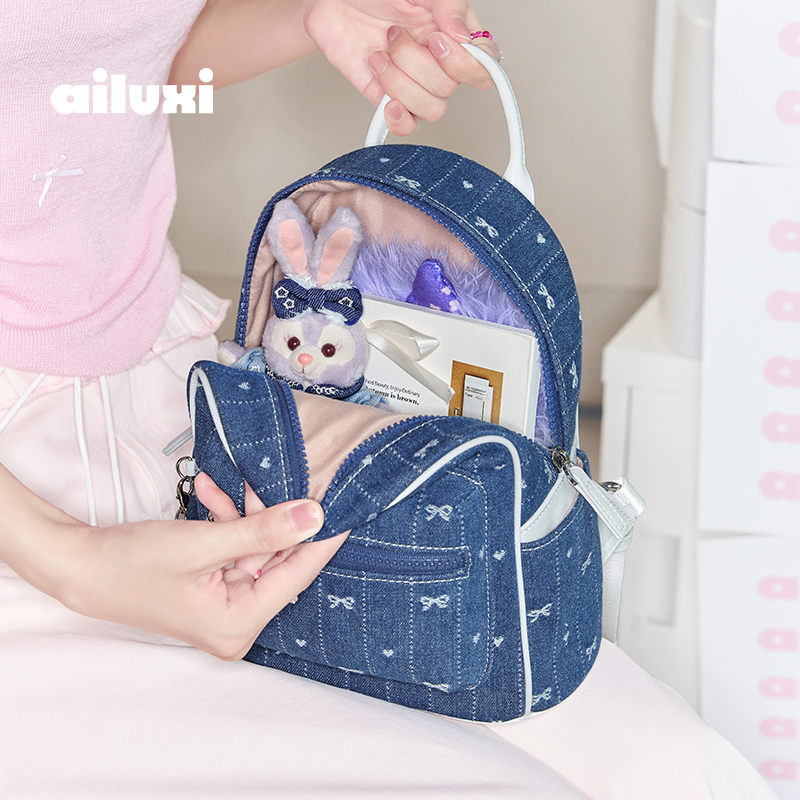 爱路喜包包女小众设计感韩系蝴蝶结刺绣双肩包小型复古可爱小背包
