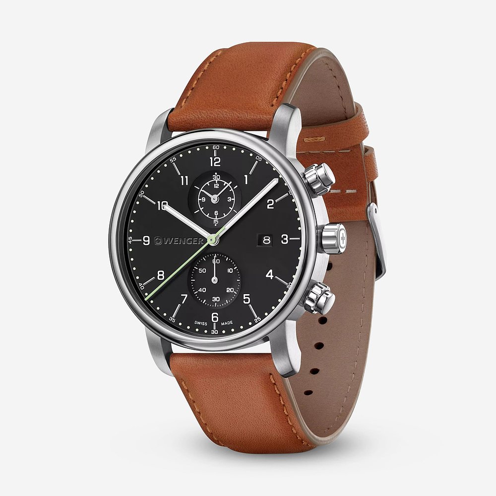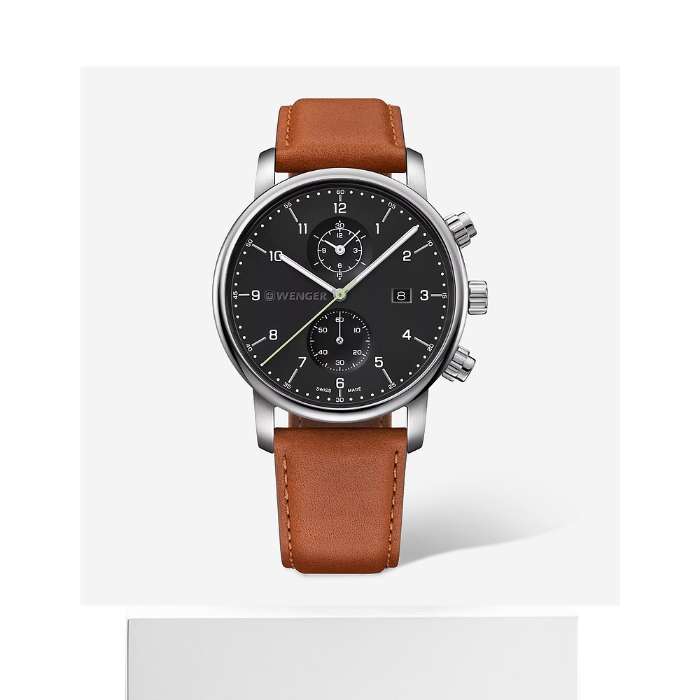 自营 WENGER Swiss Army 01.1743.121 都市经典黑色表盘计时码表