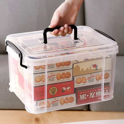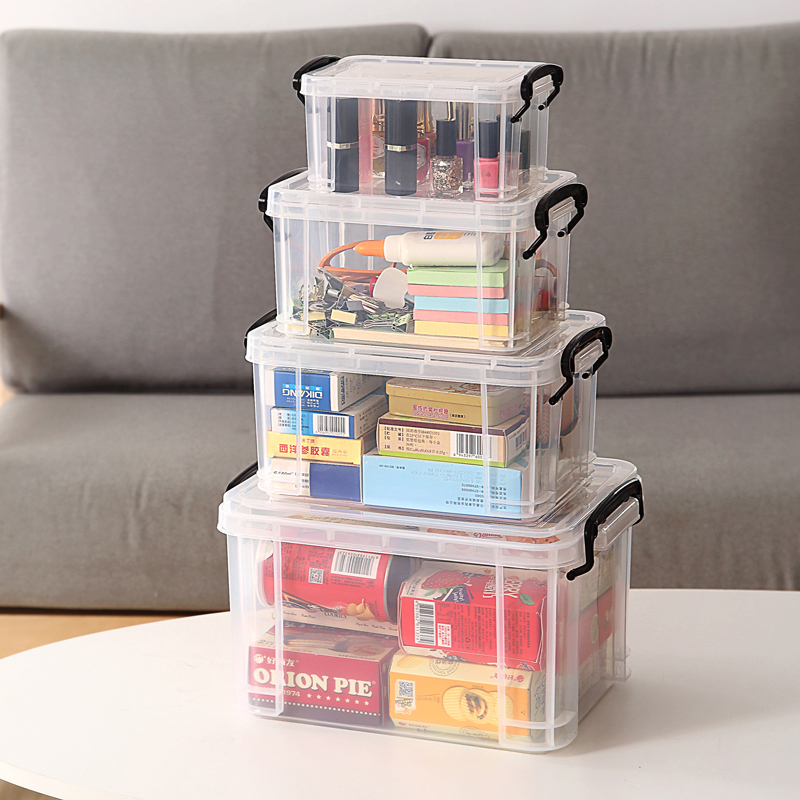 桌面收纳盒透明杂物零食儿童玩具收纳箱塑料化妆品带盖储物盒小盒
