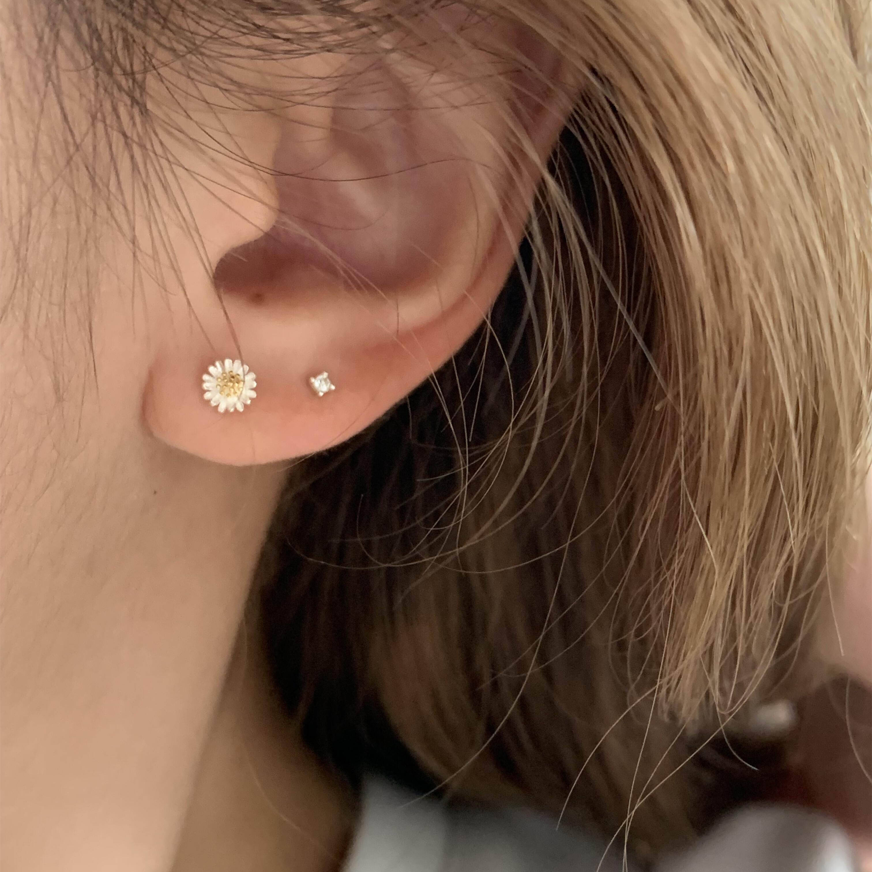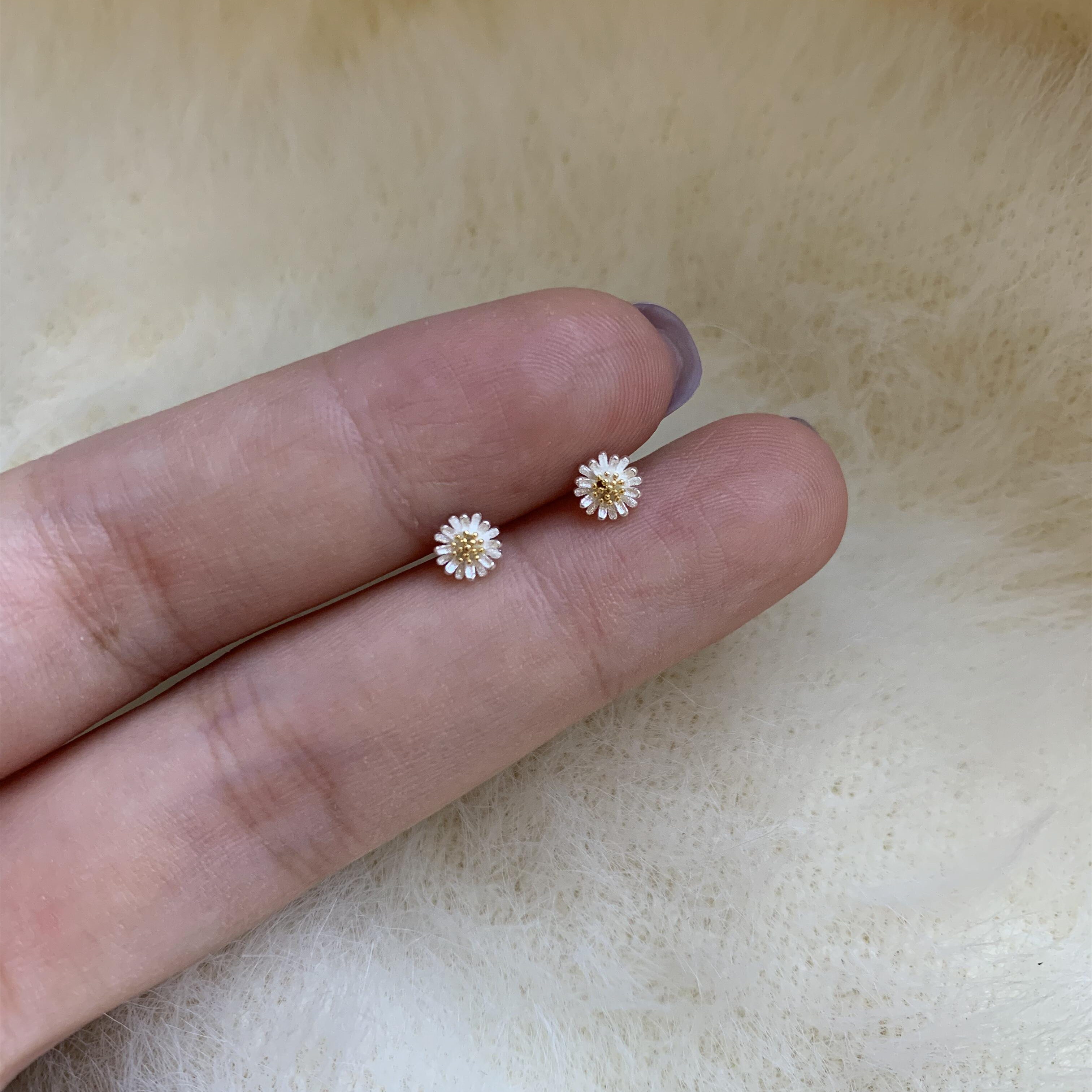 S925银mini小雏菊耳钉女小众设计感高级轻奢气质百搭花朵耳环耳饰
