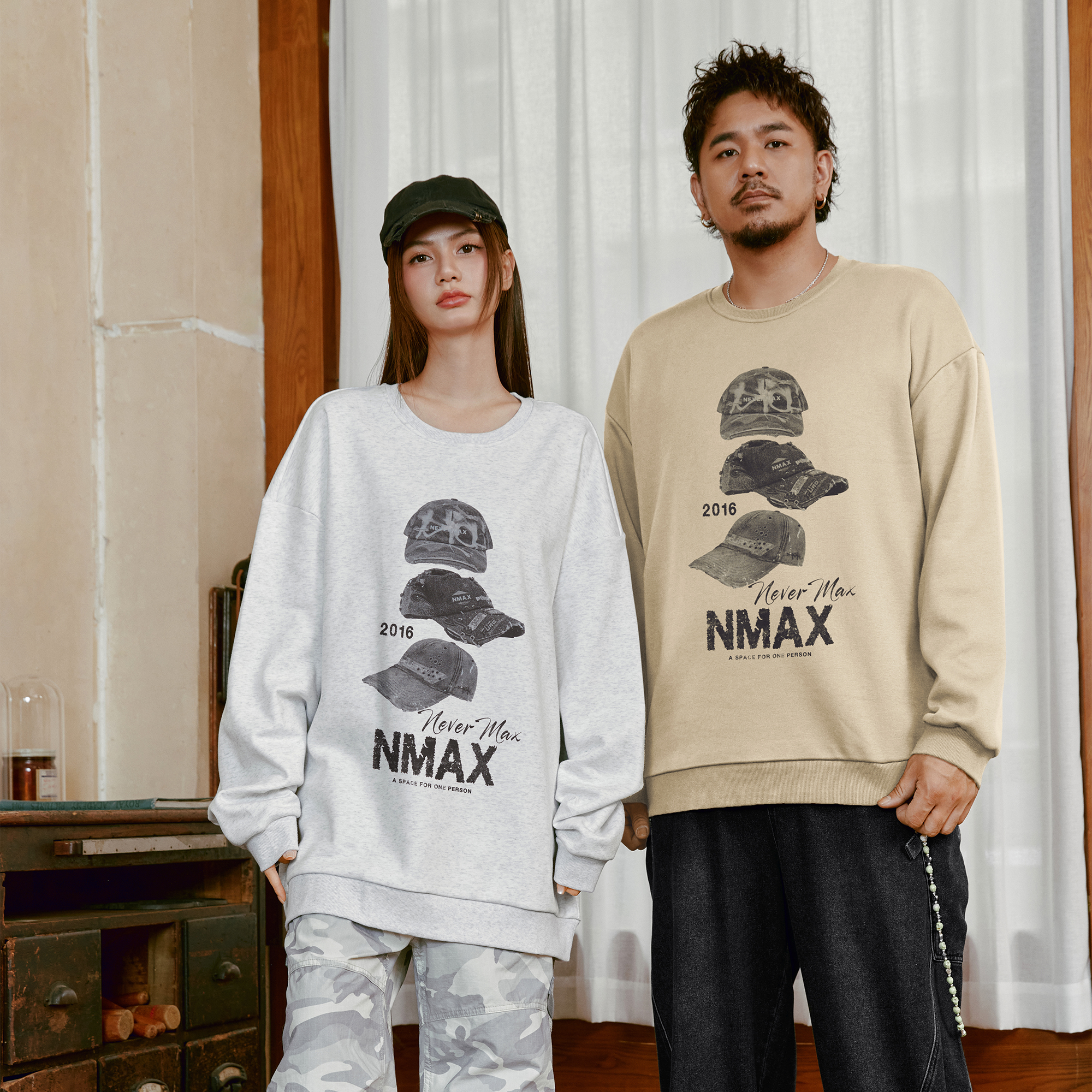 NMAX大码潮牌男装25年冬季新款潮流印花蓄热保暖宽松休闲圆领卫衣