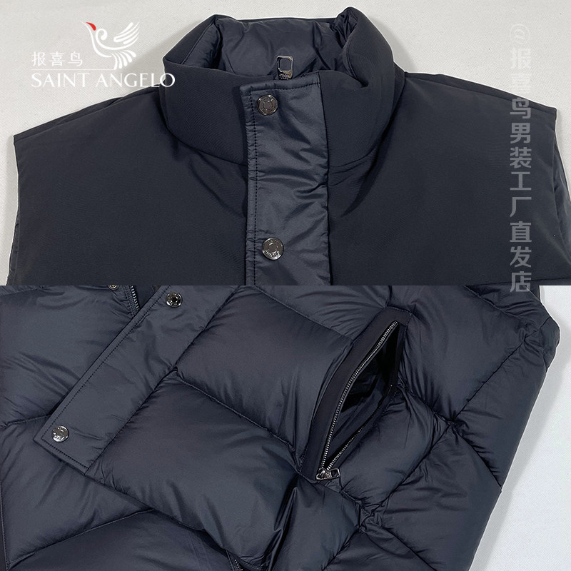 报喜鸟羽绒服马甲曜石黑白鸭绒冬季男士立领外套商场同款正品上衣