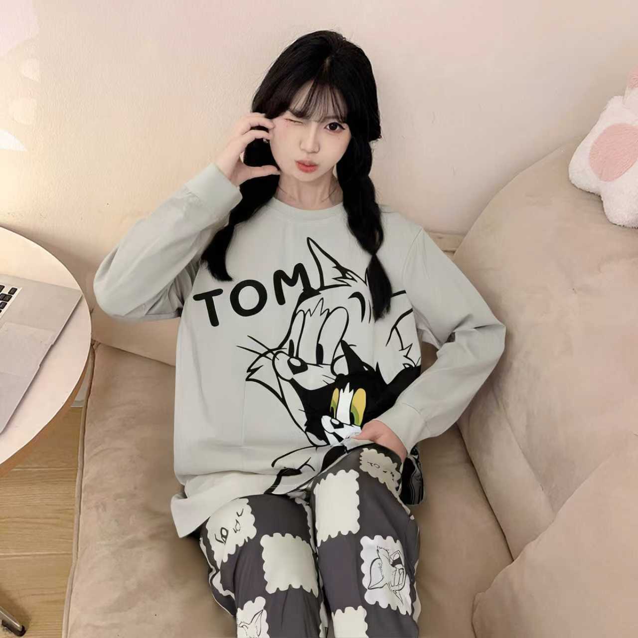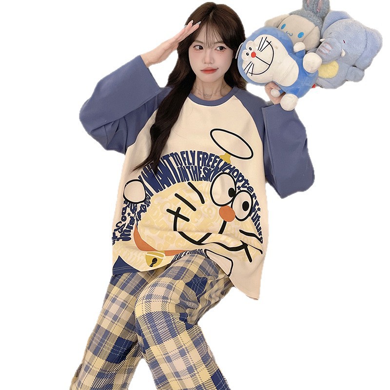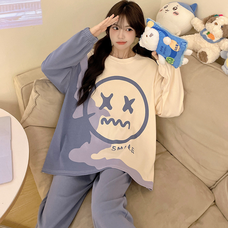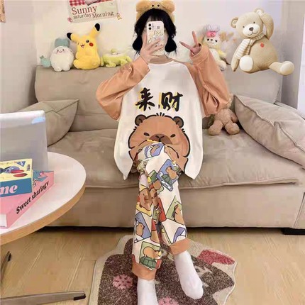 女生新款纯棉睡衣春秋季长袖长裤卡通可爱青少年学生胖MM家居服