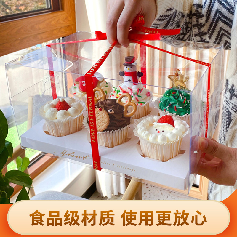 纸杯蛋糕包装盒子6粒装12透明马芬杯子4六格加高手提十二个包装盒