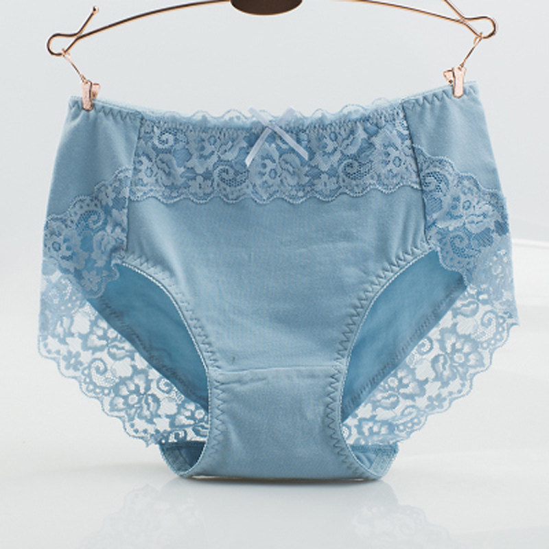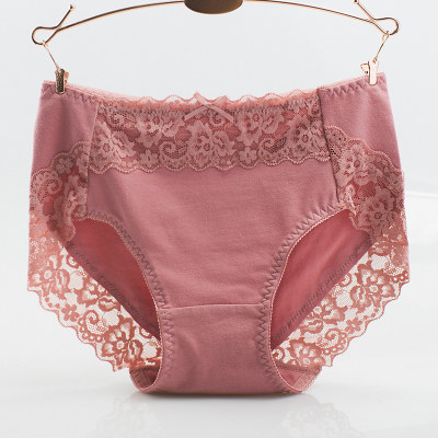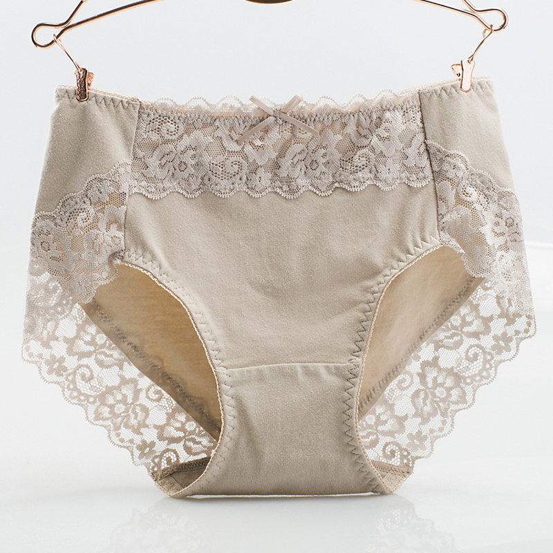4条盒装纯棉内裤女中高腰性感蕾丝边无痕包臀收腹大码胖mm三角裤