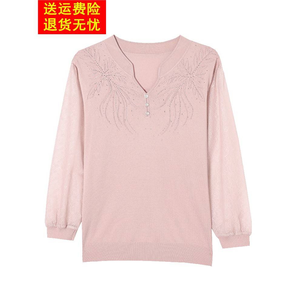 喜卉妈妈春装新款针织纱袖T恤小衫中老年女装阔太太洋气高贵上衣