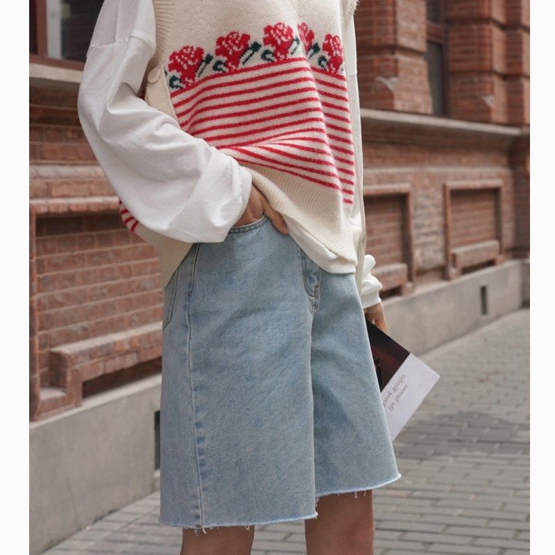 孕妇短裤女夏季薄款外穿牛仔阔腿裤夏装孕早期打底大码五分中裤子