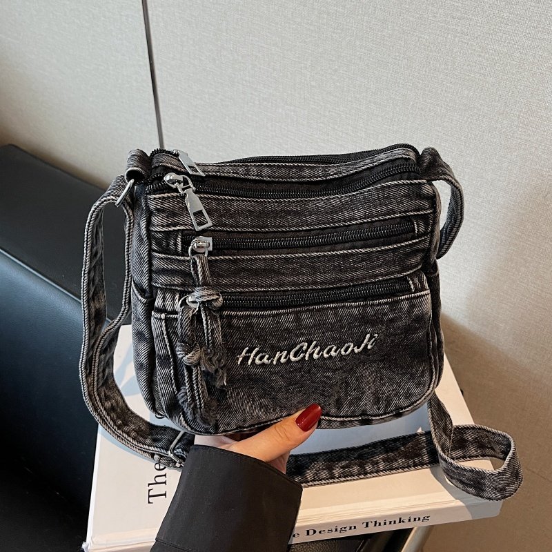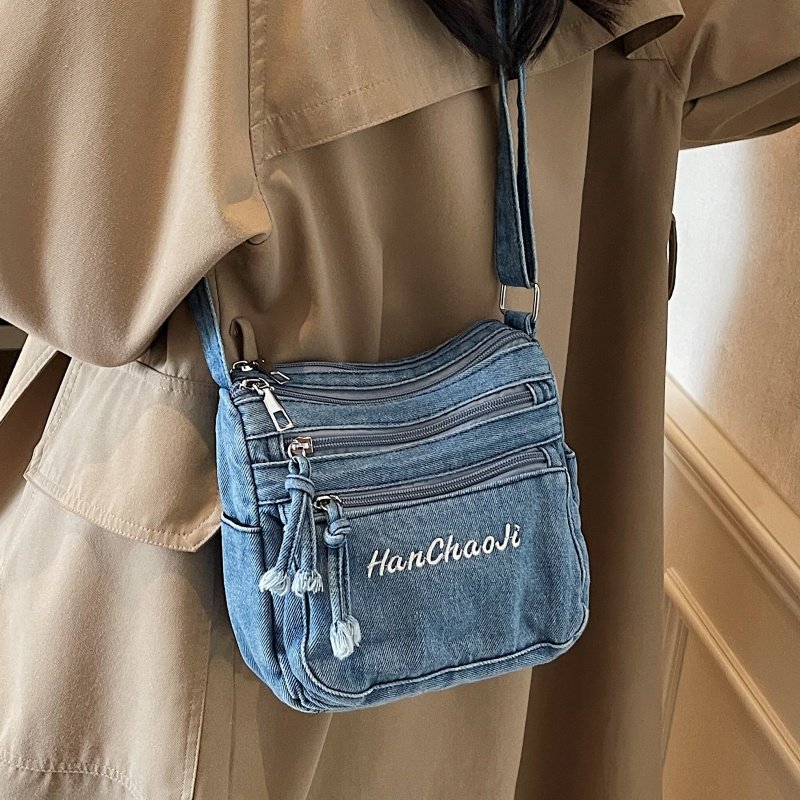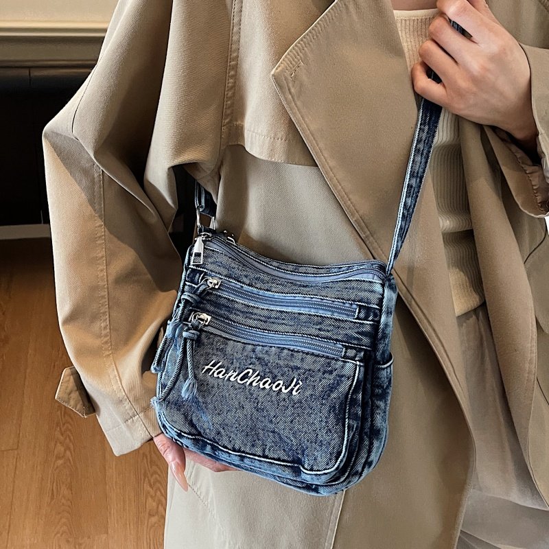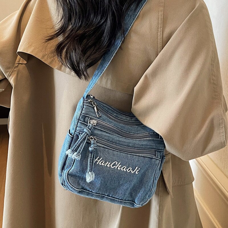 多分层牛仔布小包包女潮大容量单肩通勤手机包小众ins百搭斜挎包