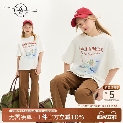 中大童女童夏季短袖T恤2025夏装新款字母卡通印花薄款学生上衣潮