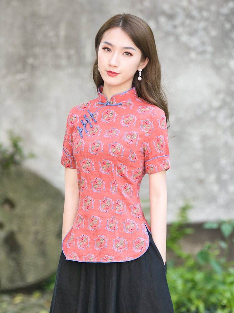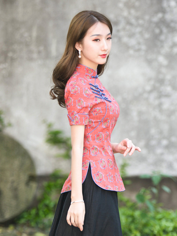 筠雅唐装女中国风改良旗袍上衣2025年夏季短袖茶服中式禅意女装