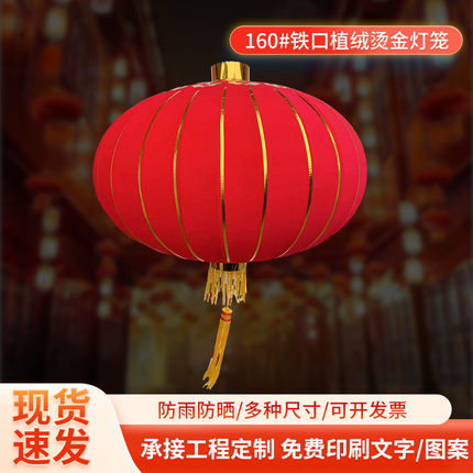 批发大红铁口灯笼婚庆开业装饰植广告烫金灯笼印字绒布宫灯厂家