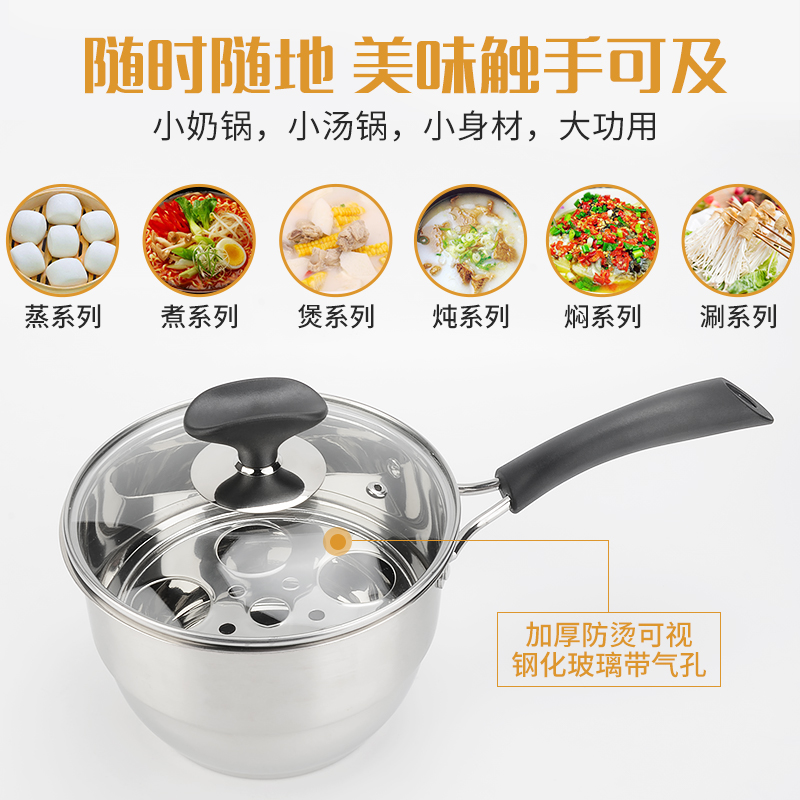 不锈钢加厚奶锅蒸锅不粘锅牛奶锅小奶锅电磁炉燃气通用汤锅辅食锅
