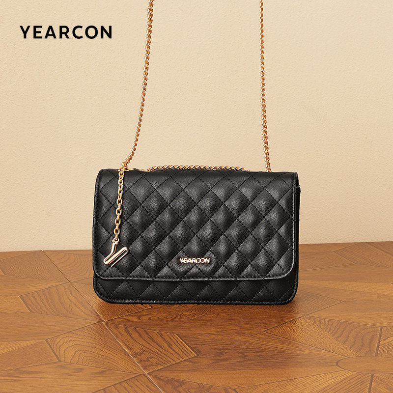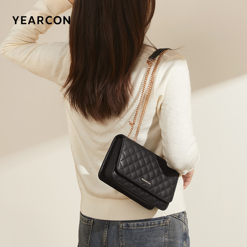 意尔康牛皮包2025春夏新款斜挎包女包质感菱格包链条包节日礼物