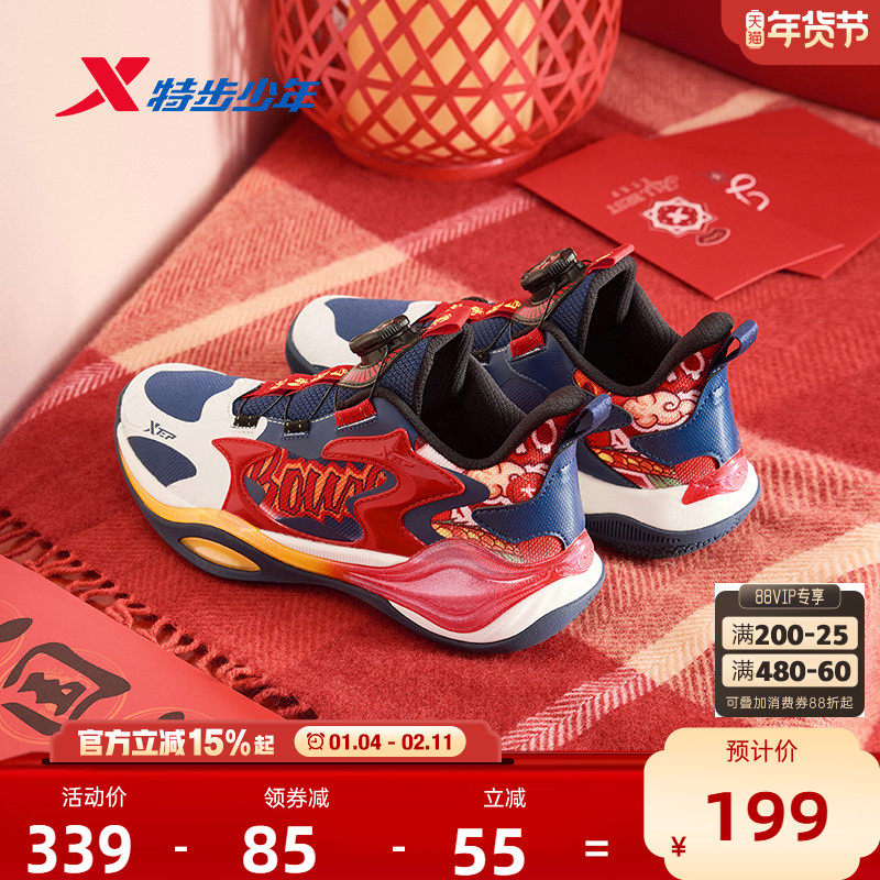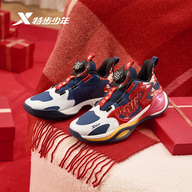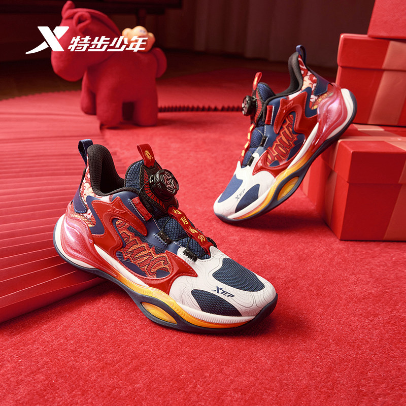 猎鹰1.0|特步童鞋儿童新年款运动鞋男童旋钮扣耐磨篮球鞋红色球鞋
