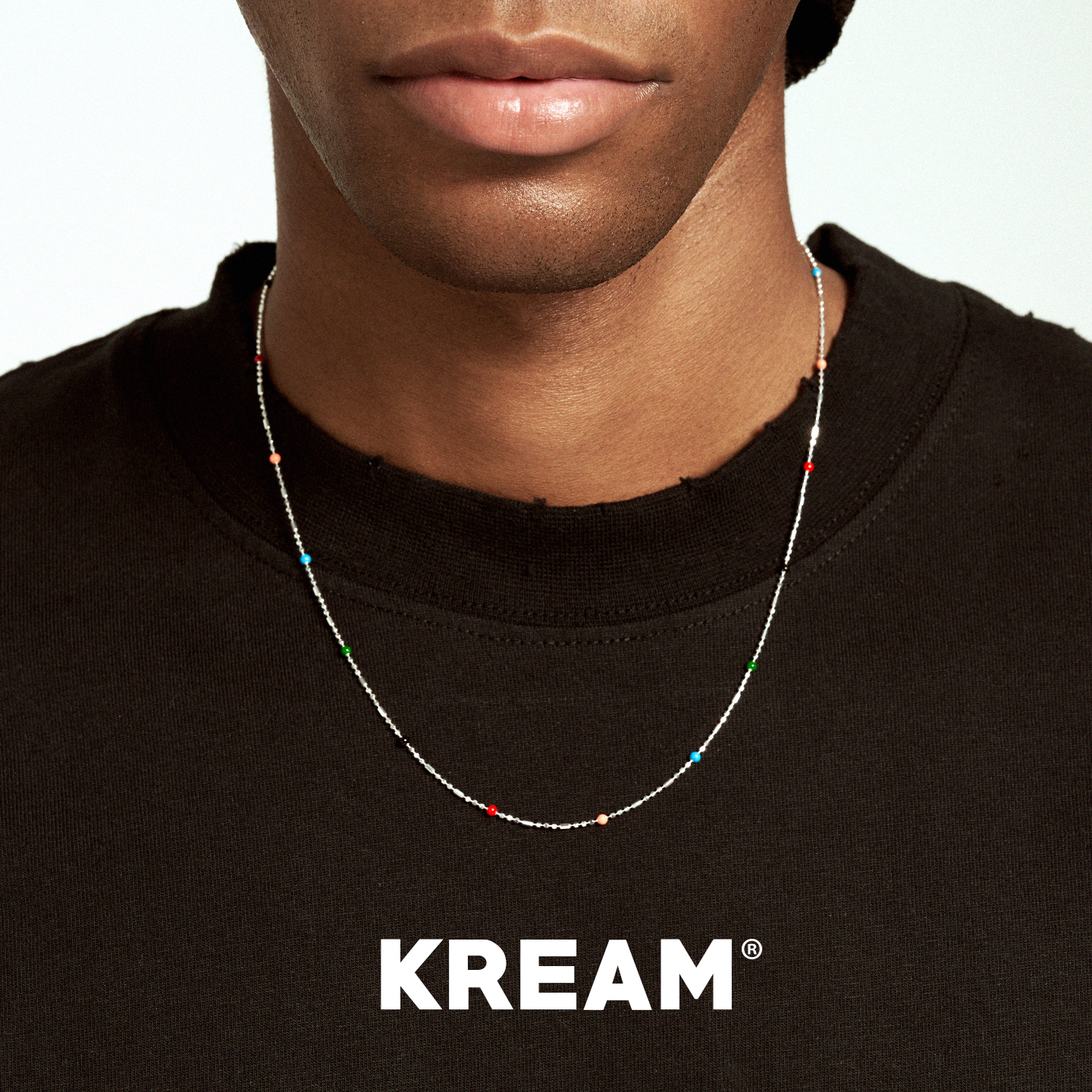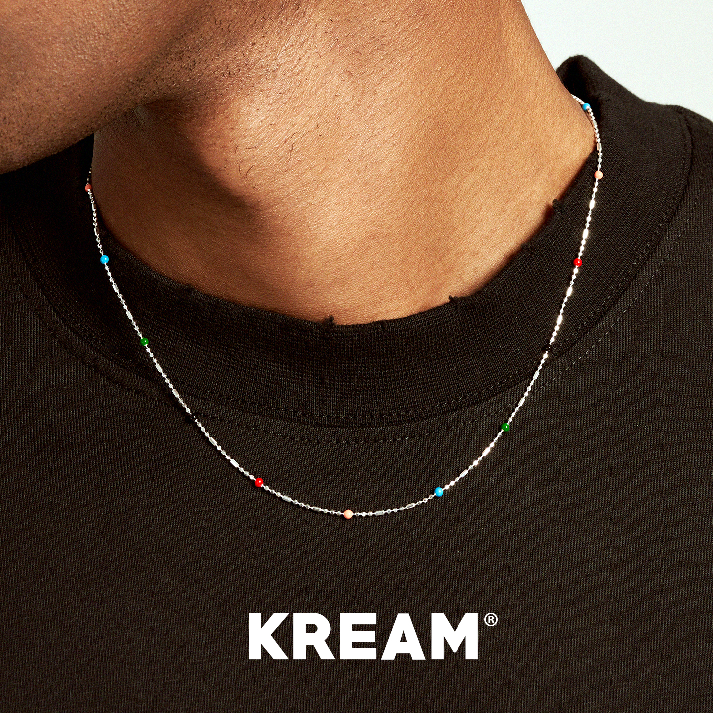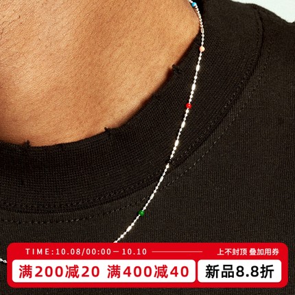 KREAM 纯银 超细锁骨链彩色滴油圆珠项链男毛衣链女