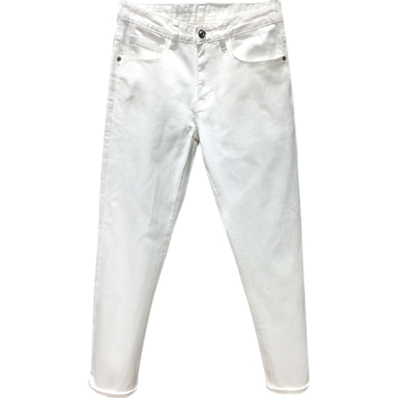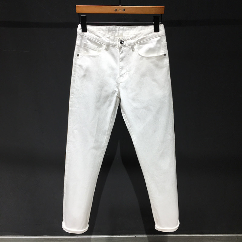 白色牛仔裤男夏季薄款休闲百搭潮流高端修身小脚白色九分裤古士狼