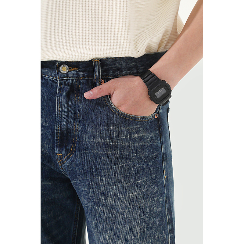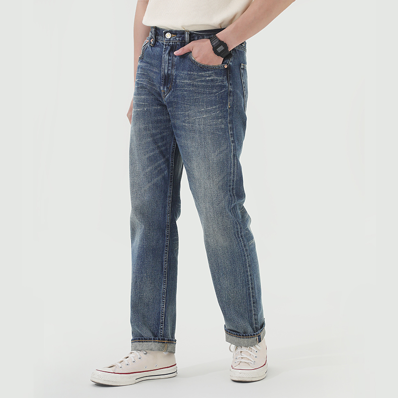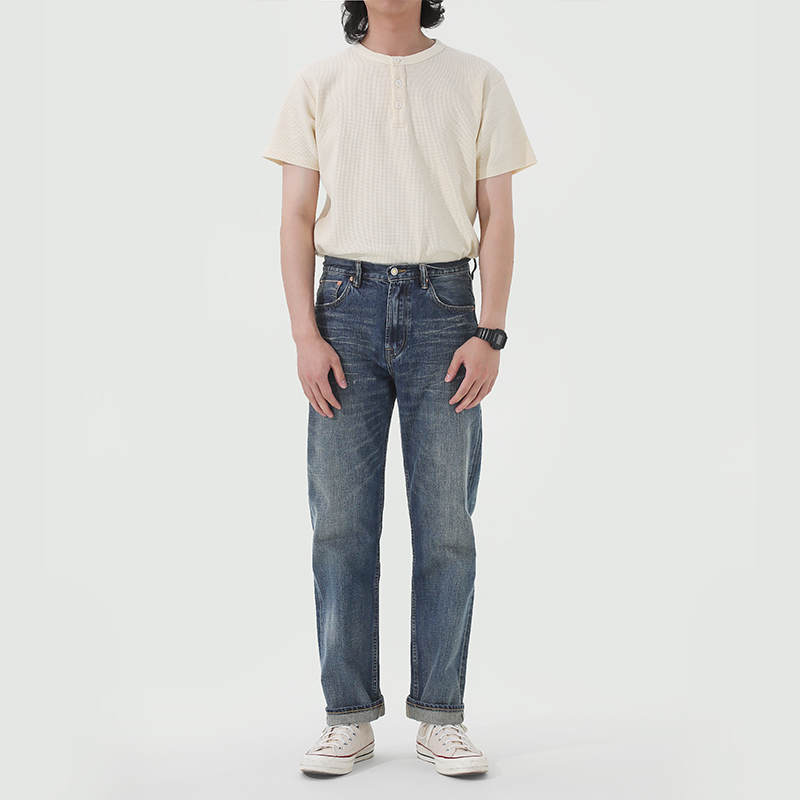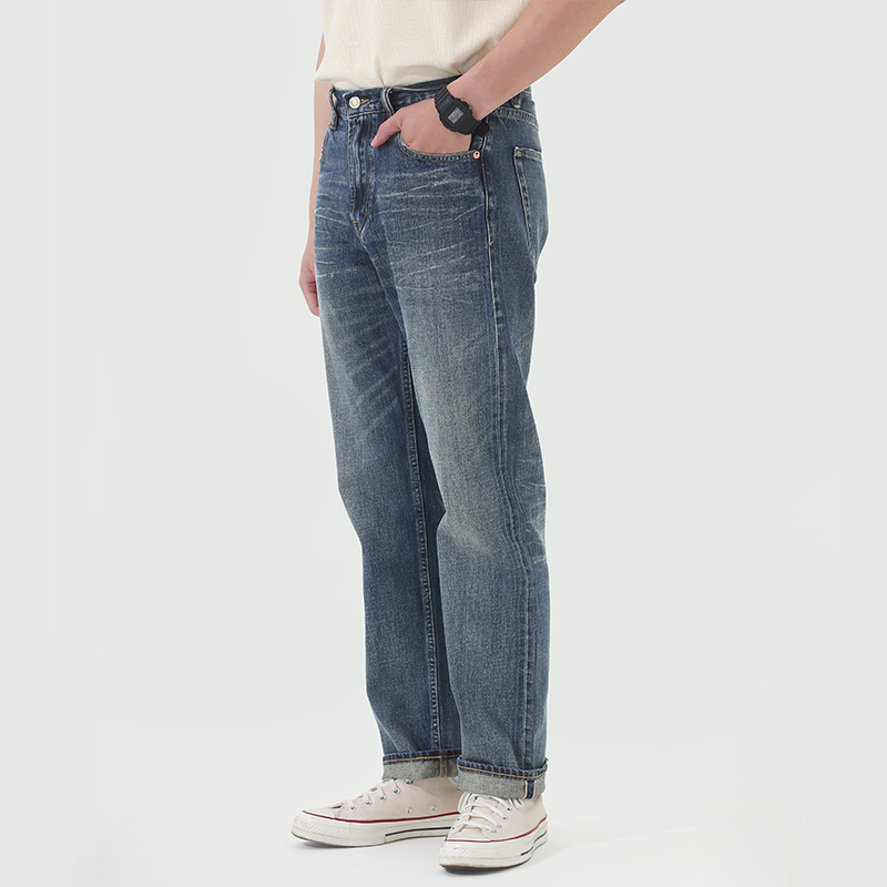 高端复古阿美咔叽赤耳丹宁长裤工艺水洗宽松直筒牛仔裤MBBCAR窄幅
