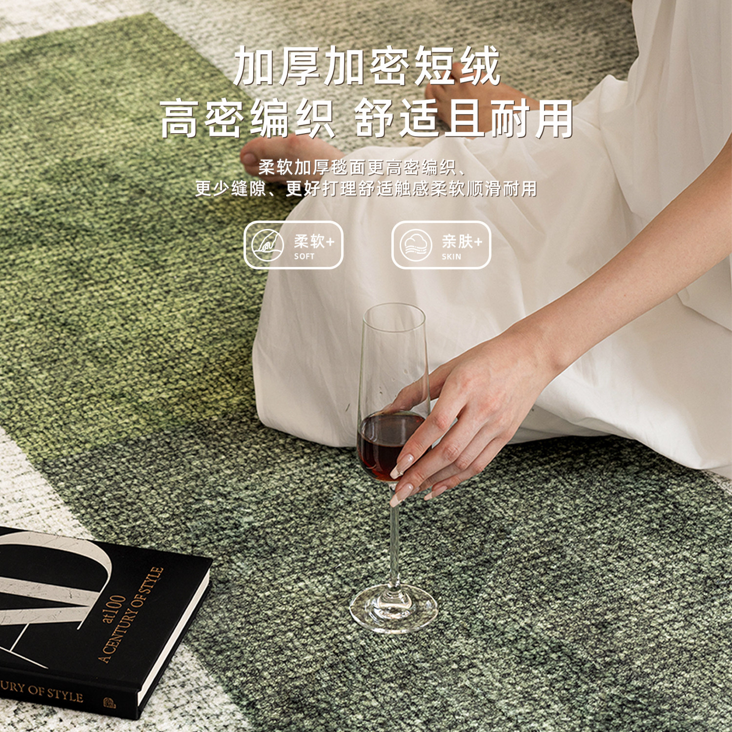 ins风绿色苔藓地毯毛绒卧室床边地垫中古主卧飘窗毯床下防摔脚垫