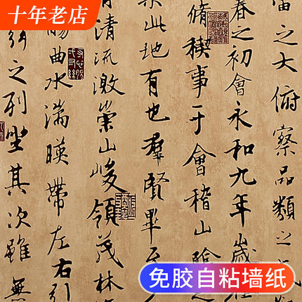 中式字画自粘墙纸铝箔背胶超厚版