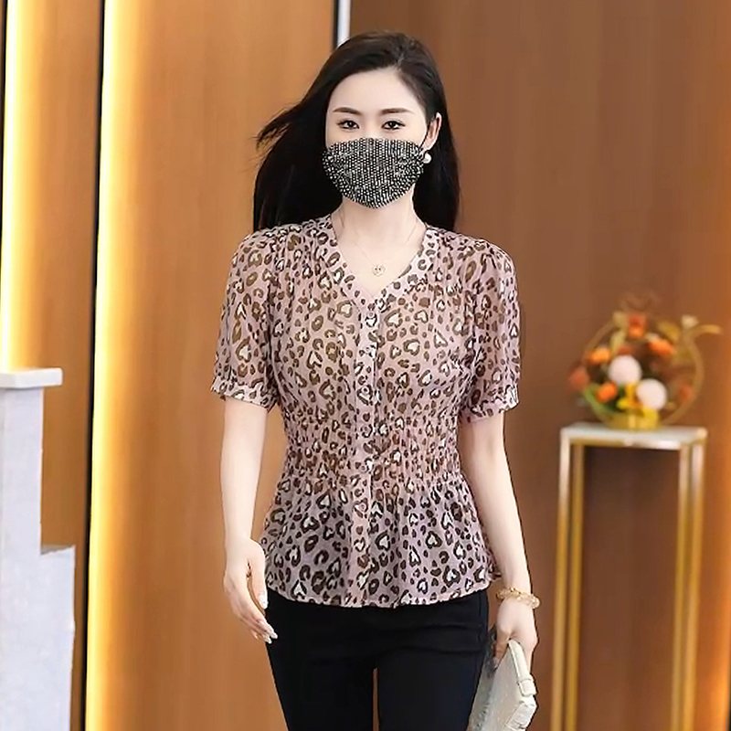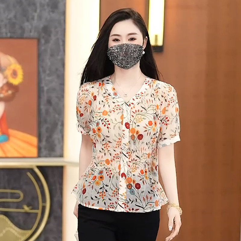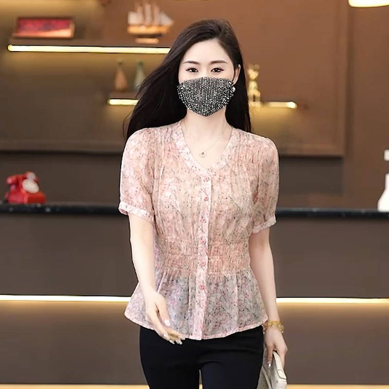 短袖碎花雪纺衬衫女夏季2025年新款裙摆收腰小衫洋气减龄女士上衣