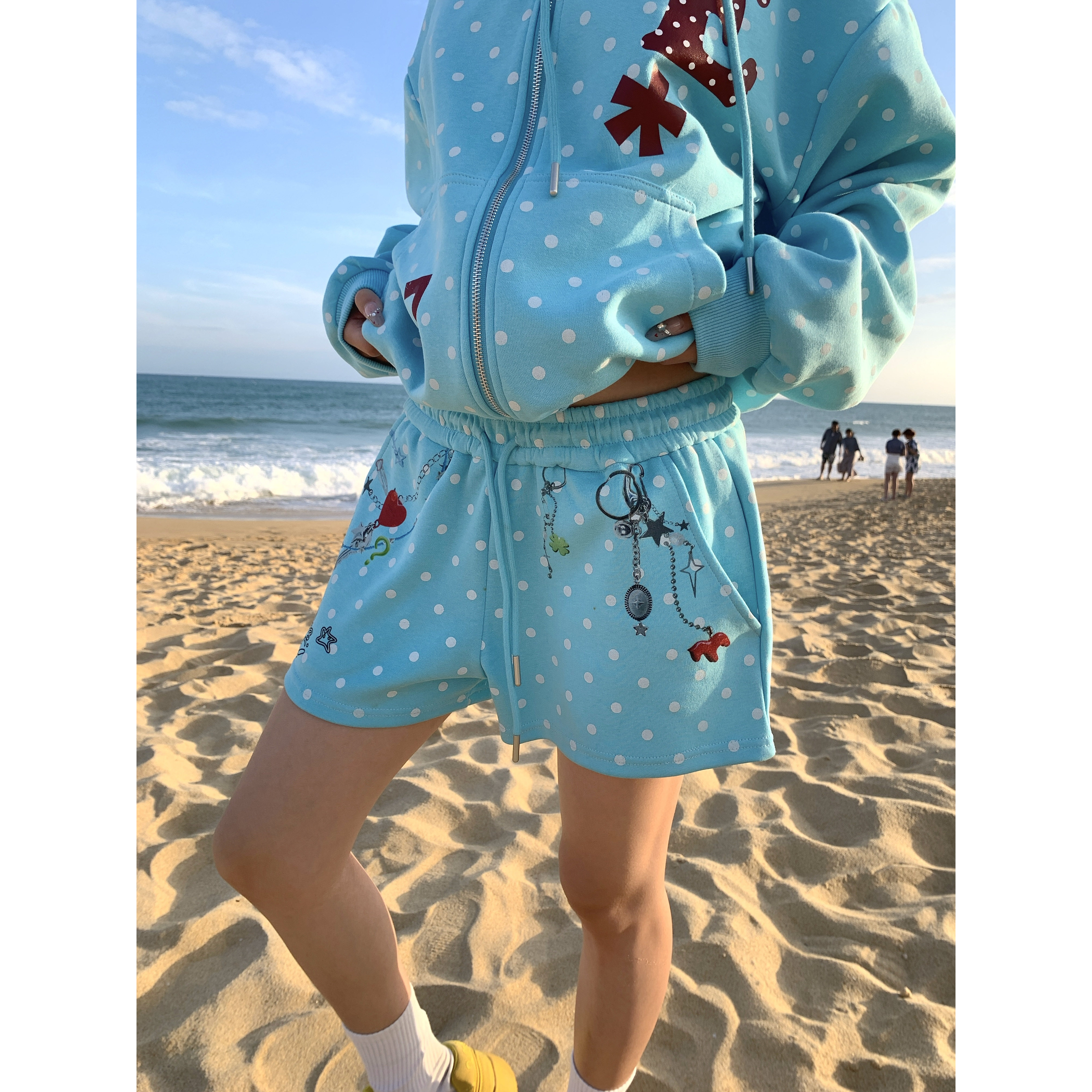 GTGA 美式复古卡通波点印花短裤女夏季甜妹可爱休闲百搭沙滩裤