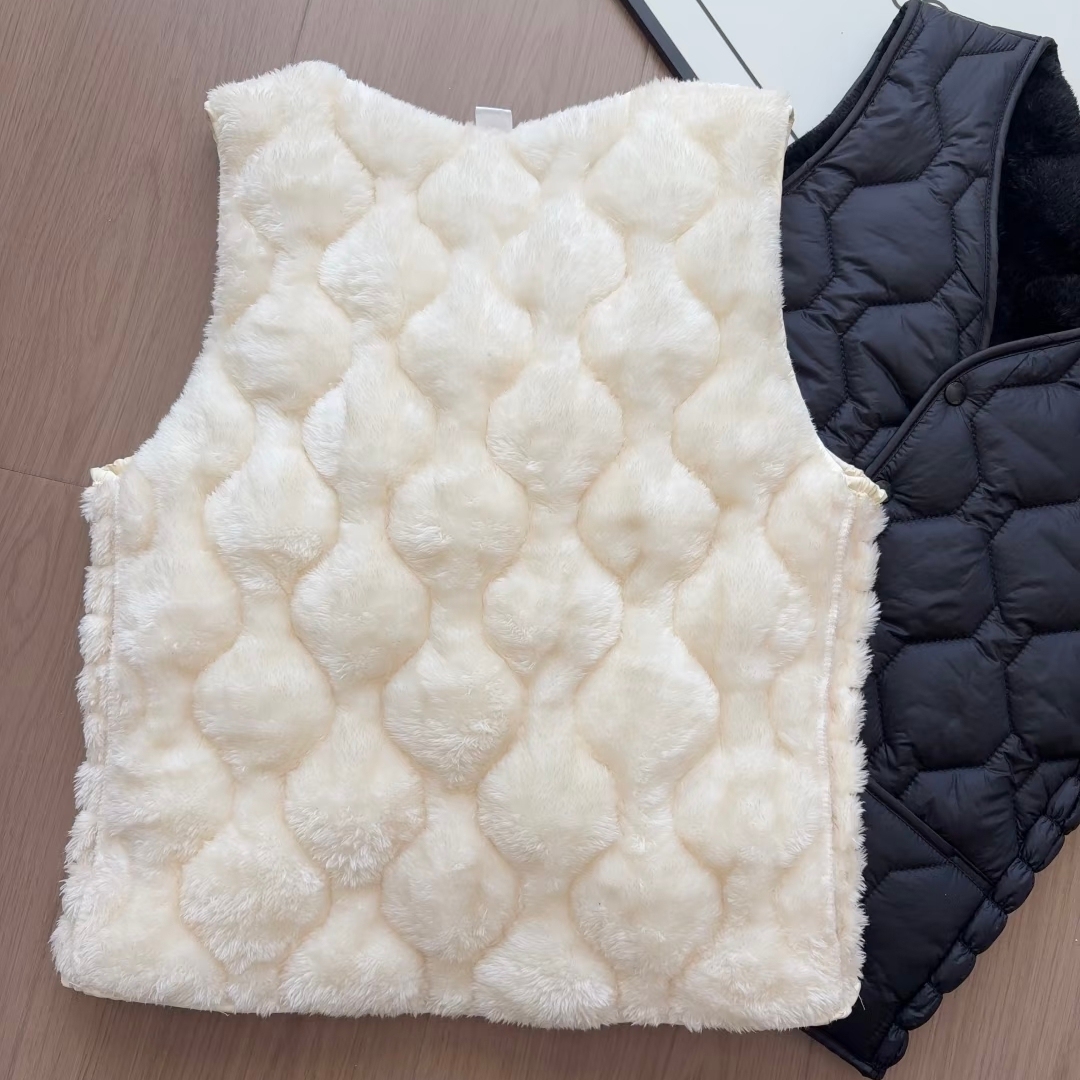 羊羔绒羽绒棉马甲女秋冬配大衣内搭马夹加绒v领坎肩加绒保暖背心