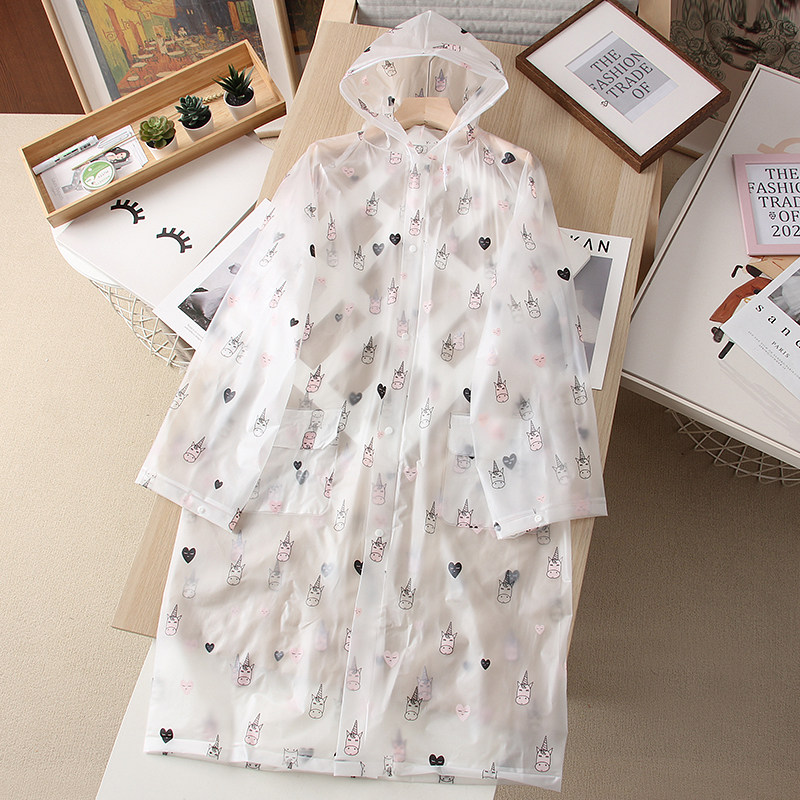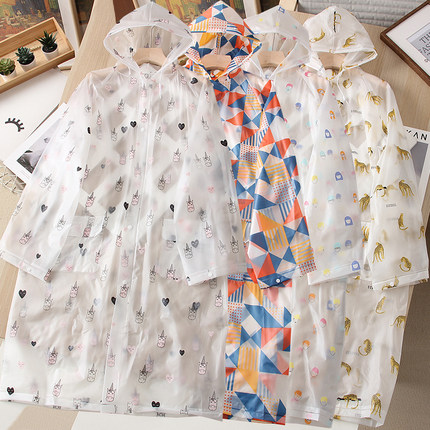 成人款!男女中长款便携式户外旅游雨衣外套情侣休闲连帽印花雨披