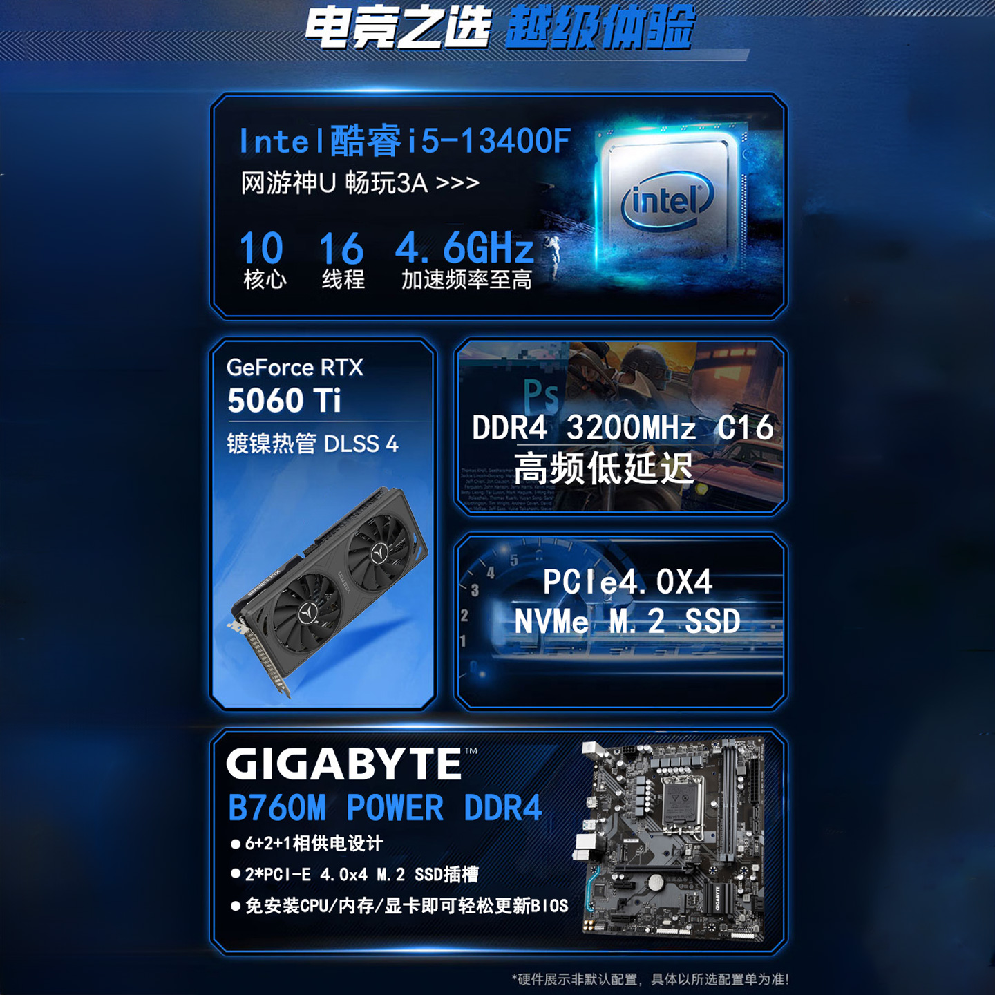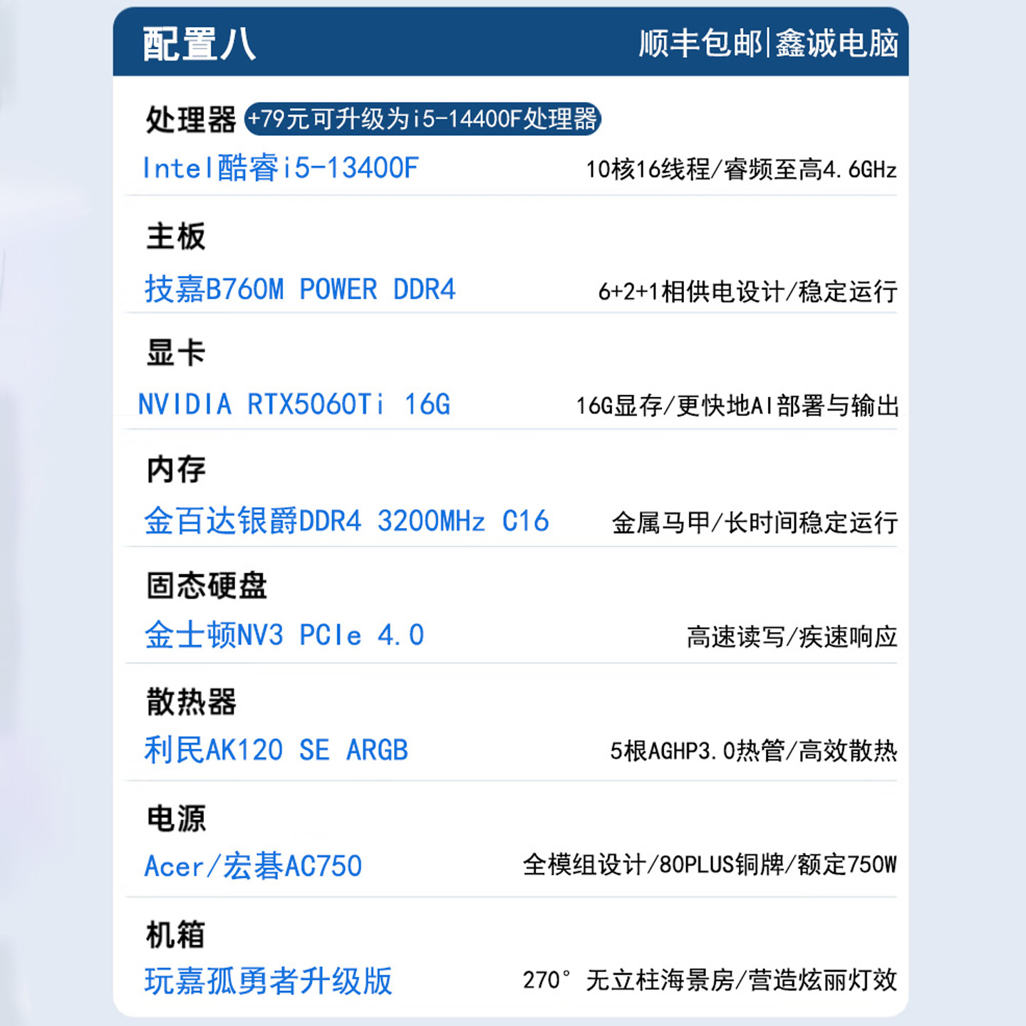 Intel酷睿i5-13400海景房电脑主机diy组装台式机5060高配电竞整机