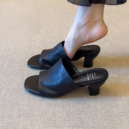 nnmiss/6.5cm优雅复古高跟凉鞋百搭圆头粗跟一字露趾凉拖鞋