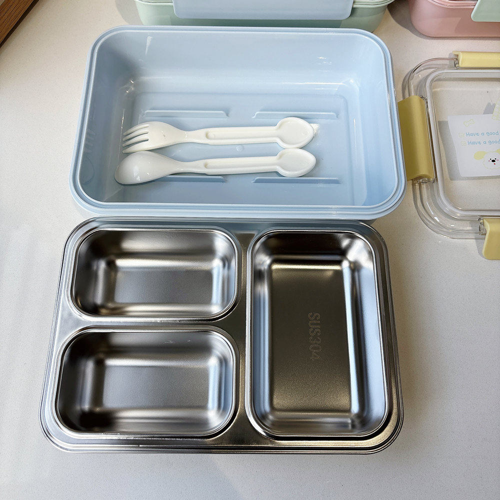 防串味304不锈钢饭盒密封保温餐盒学生加厚可注水便携分格便当盒