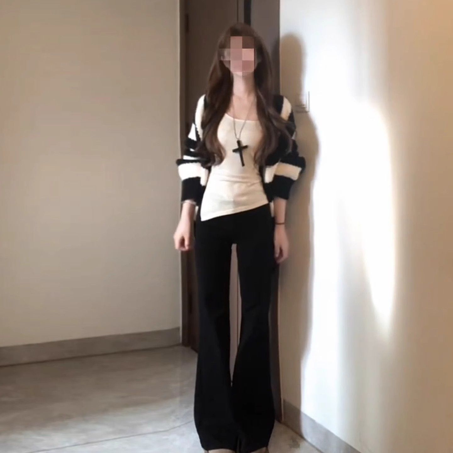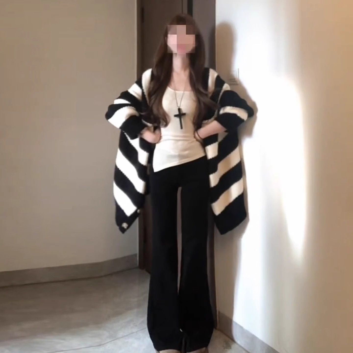 条纹软糯毛衣外套女加长款针织衫开衫宽松慵懒风2025新款春秋冬季