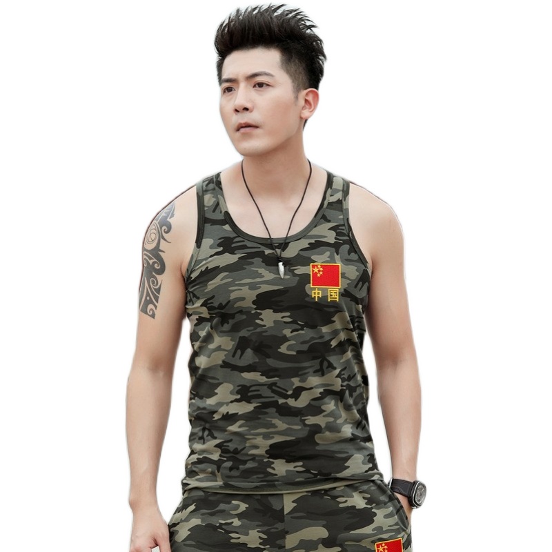 迷彩背心男款夏季纯棉修身大码跨栏汗衫剌绣中国地图外穿无袖t恤