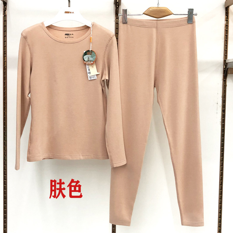新一系新1系YJ61856新款加厚女士圆领蚕丝羊毛暖肤衣套装秋衣秋裤