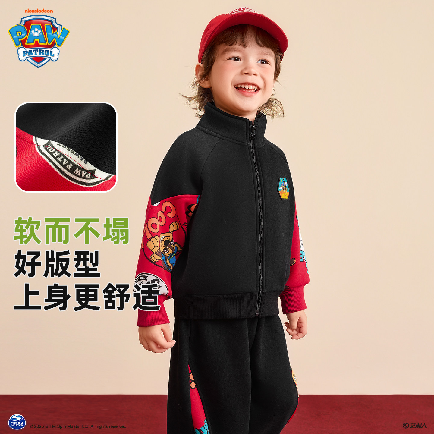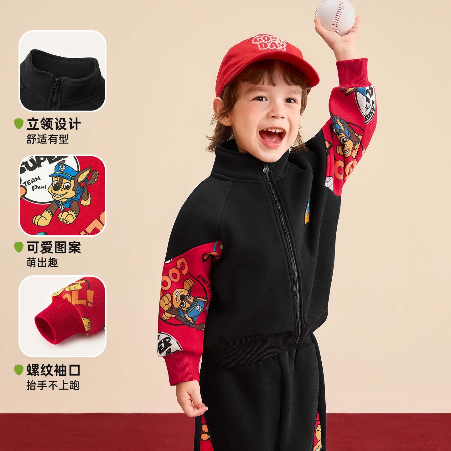 汪汪队儿童加绒外套秋冬棒球外套宝宝红色年服上衣男孩圣诞新年服