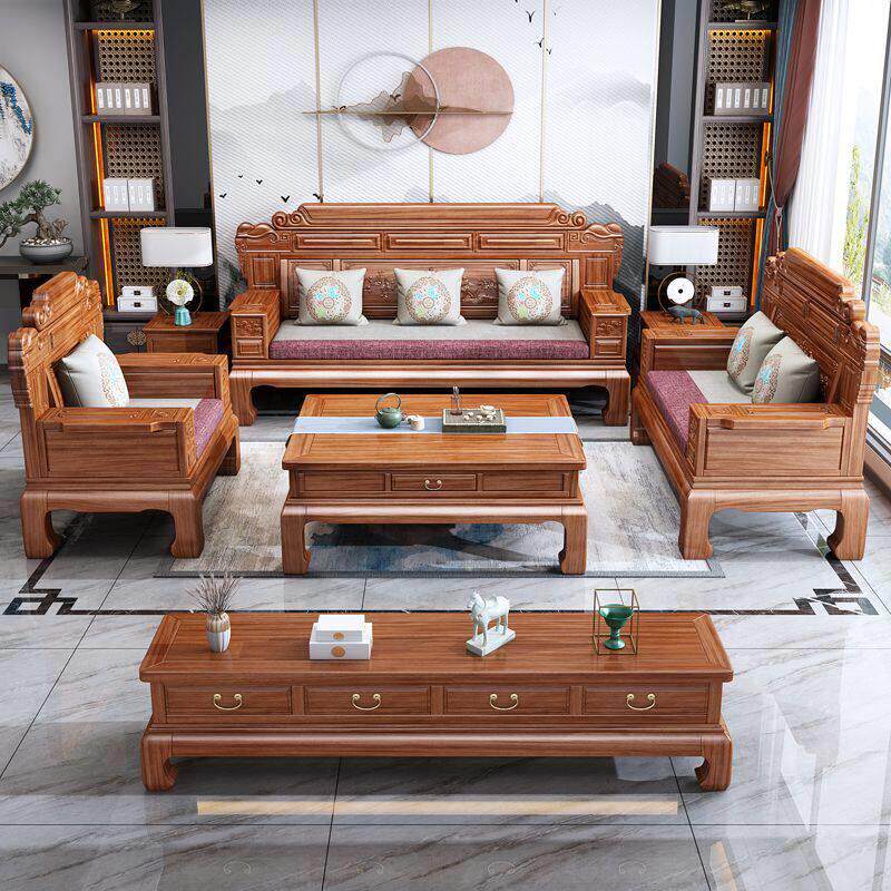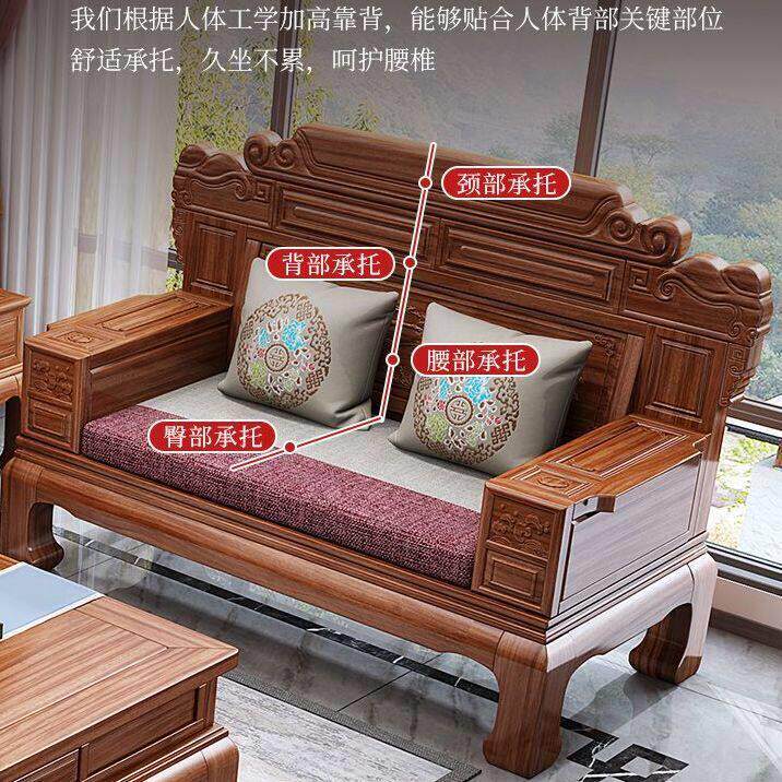 式菠萝格高17769实木沙发全木雕花别墅客厅实冬夏两用中档红木古