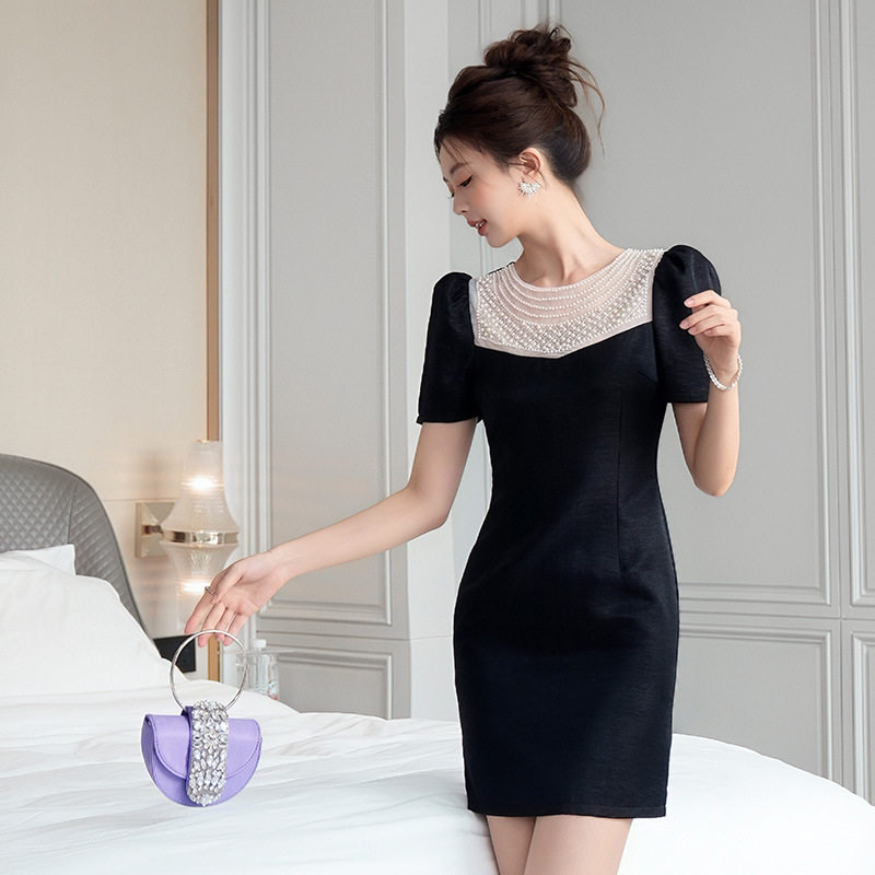2026夏新款重工赫本珍珠领小黑裙女装收腰包臀连衣裙优雅女士礼服