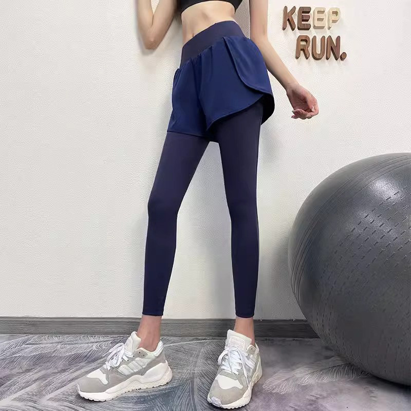 加绒假两件瑜伽裤女秋冬高腰提臀跑步运动健身服紧身显瘦长裤速干