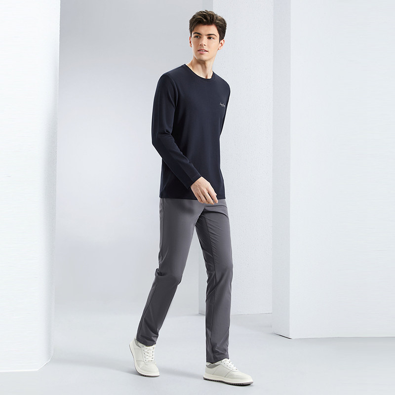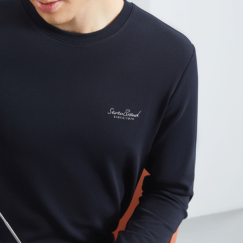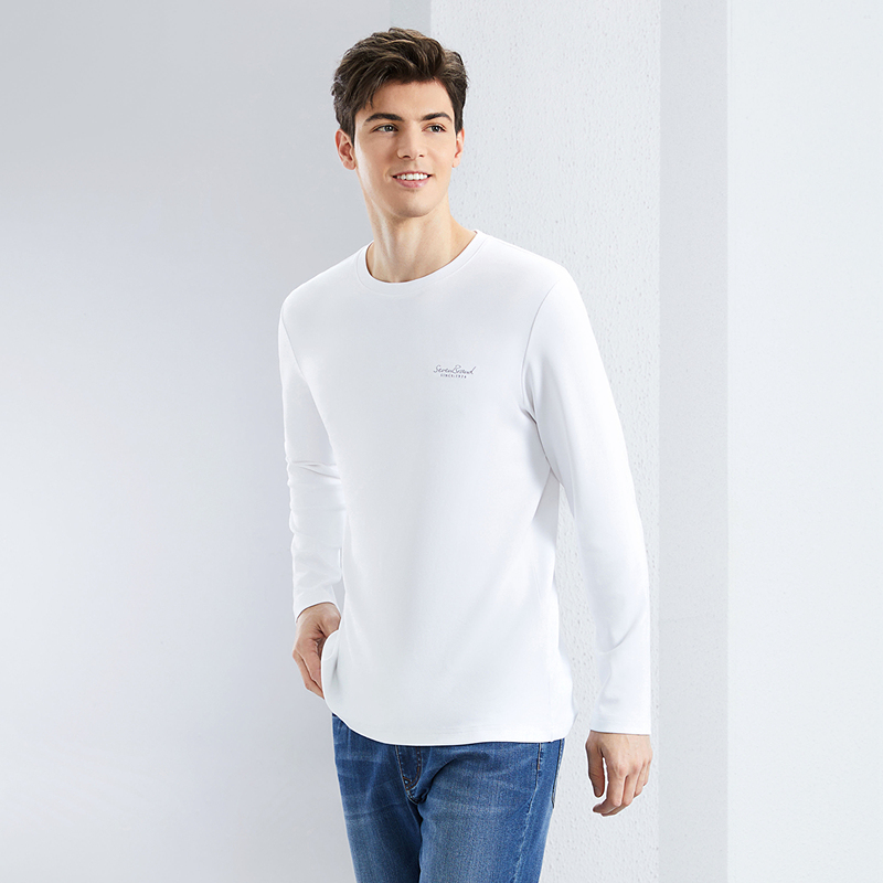 【含莫代尔】柒牌清仓男士长袖T恤春季时尚休闲柔软舒适圆领上衣